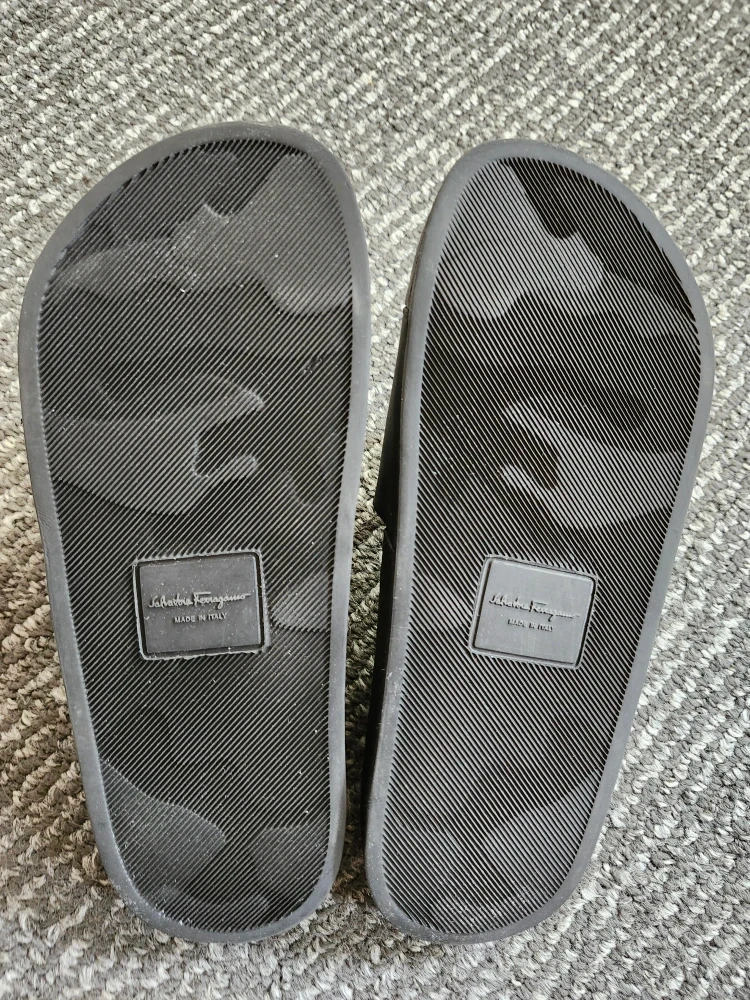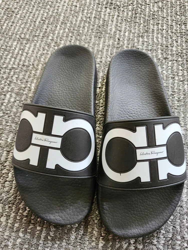 26Authentic Salvatore Ferragamo slide sandal, groove gancini with the brand's logo on the front strap. Ladies size 6., clean and in great shape,.