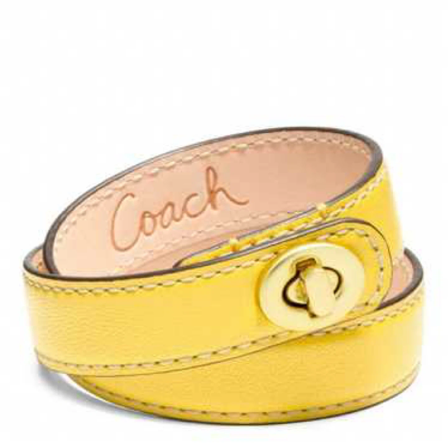 Coach Yellow Leather Turnlock Double Wrap Bracelet