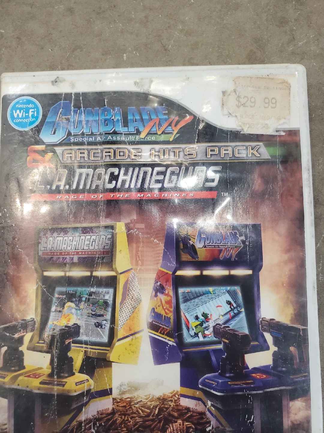 10Selling a used copy of Gunblade NY & L.A. Machineguns Arcade Hits Pack for the Nintendo Wii! This game features two classic arcade shooters in one package. Get ready for some intense action and precise shooting!