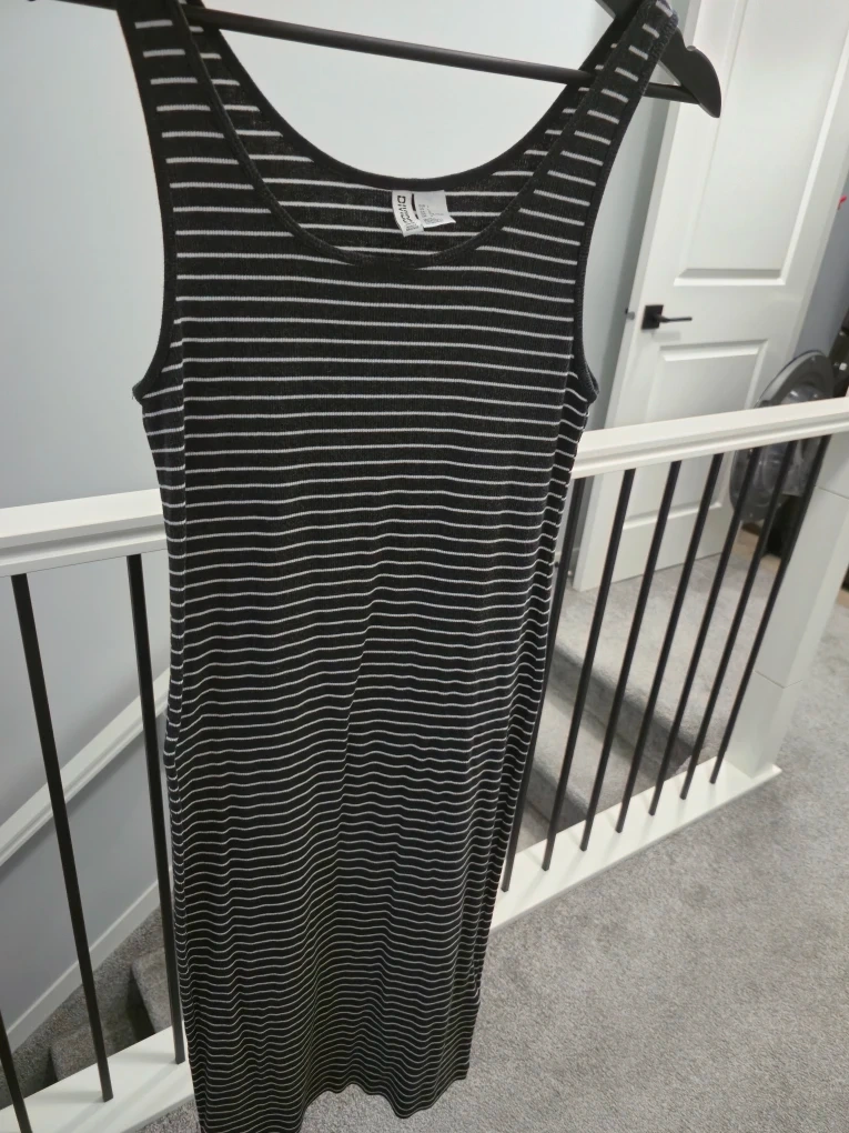 Two dresses for sale! One is a SHEIN cute floral print, and the other is a H&M black and white striped dress. Both are in great condition and ready for a new home