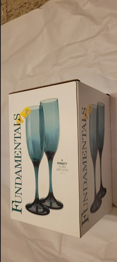 217Selling a set of 4 Fundamentals Dynasty Flutes in a lovely green colour! They come in their original box, ready to add a touch of elegance to your next celebration or cozy night in Cash only. Pick up only. Get it before it's donated. Final sale.