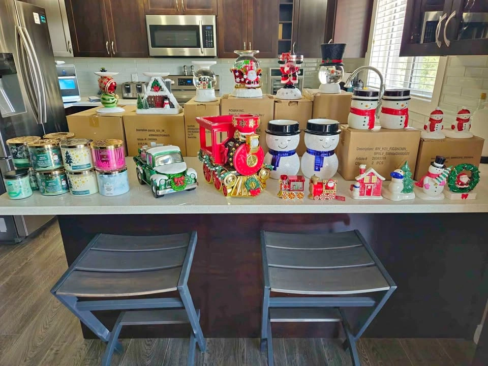 All Bath and Body Works Candle Holders/Candles. Most bigger items have original boxes. Most everything is brand new and if not is Used /like new. Pricing is very fair and reflects this. I did my homework on the items. Pricing/description will run from left to right( as pictured in main pic that shows everything and starting with the back row.