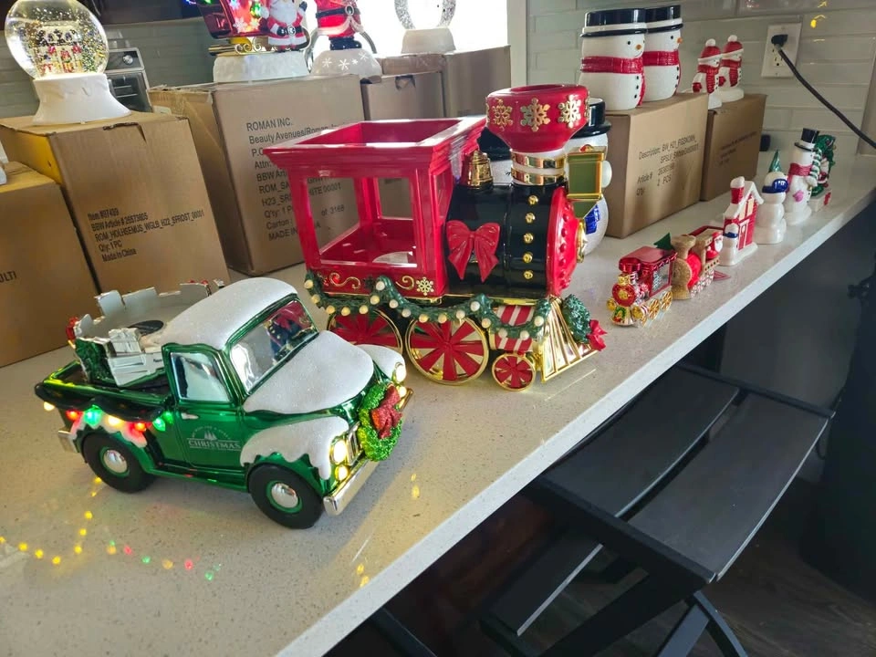 NEW Christmas Train 3 Wick Candle Luminary( candle goes inside back of train) Train lights up( headlights and christmas lights on sides of train. Takes 3 AAA Batteries which are not included. $215 This was very limited when it came out 2 or 3 years ago and is quite the statement piece.
