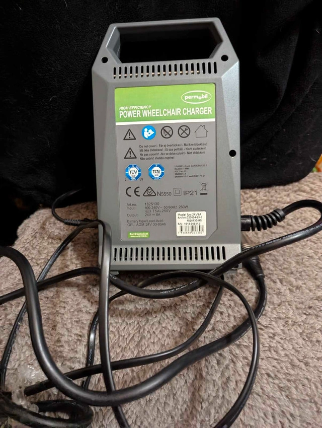 This Permobil power wheelchair charger is in used, but good condition and ready to keep your mobility device powered up! It provides a reliable 24V output at 8A, ensuring efficient charging for your GEL or AGM 24V 30-60AH batteries. Specifications: * Art no: 1825130 * Input: 100-240V~ 50/60Hz 260W * Output: 24V - 8A * Battery Type: Lead-Acid GEL, AGM 24V 30-60AH Based on similar Kijiji listings, I'm asking $165 which I believe reflects its great condition and functionality. If the ad's up, it's available—no need to ask! Grab it before it zooms away!