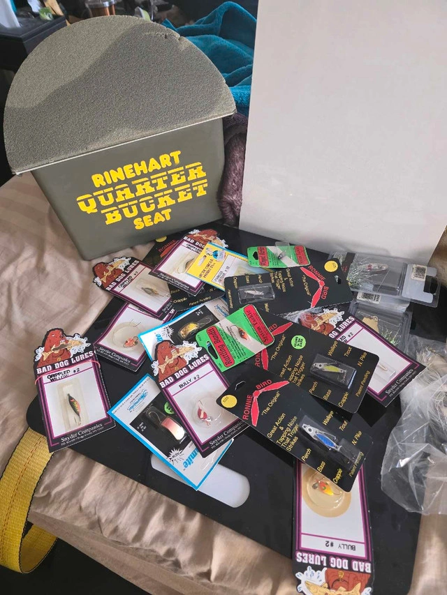 59Selling a variety of fishing gear including a Rinehart Quarter Bucket Seat, perfect for comfortable boat trips or shore fishing. This set includes an assortment of Bad Dog Lures and Fire Fix lures, catering to different fishing conditions and species. All items are in used condition. * Rinehart Quarter Bucket Seat: Durable and comfortable. * Bad Dog Lures: Selection of styles for various fish. * Fire Fix Lures: Designed for attracting fish in different water conditions. This gear is ready to hit the water, offering a good mix for any angler. Prices are set to sell, reflecting the used condition. If the ad is up, yes, it's still available!