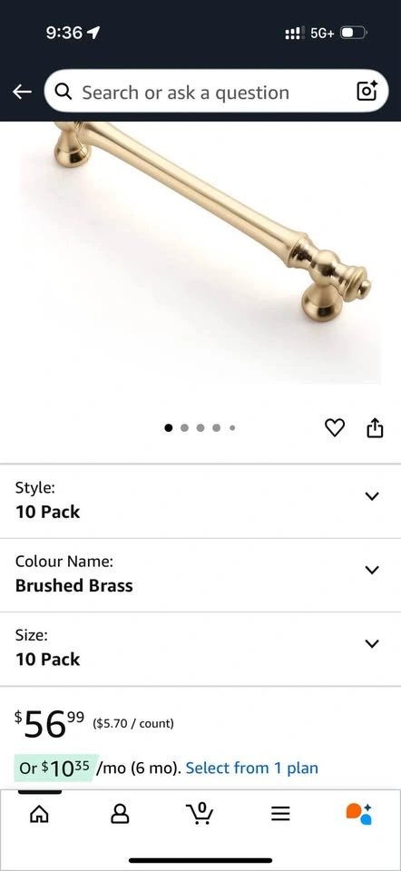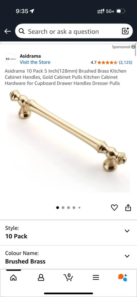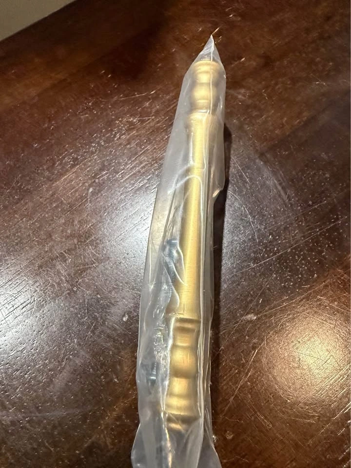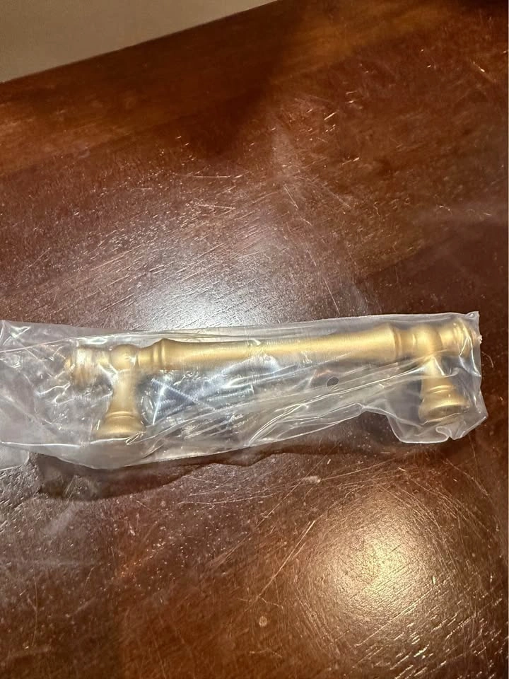 New 5” brushed brass cabinet handles. 10 in original packaging. Can be used for kitchen cabinets, dressers etc.