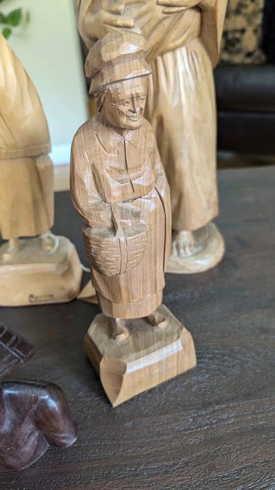 Vintage Carved Wood Figurines (3 Signed Caron)