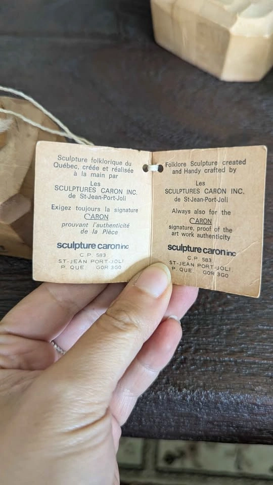 Caron figures: Carved Canadian maple or birch, natural finish, some warm honey patina