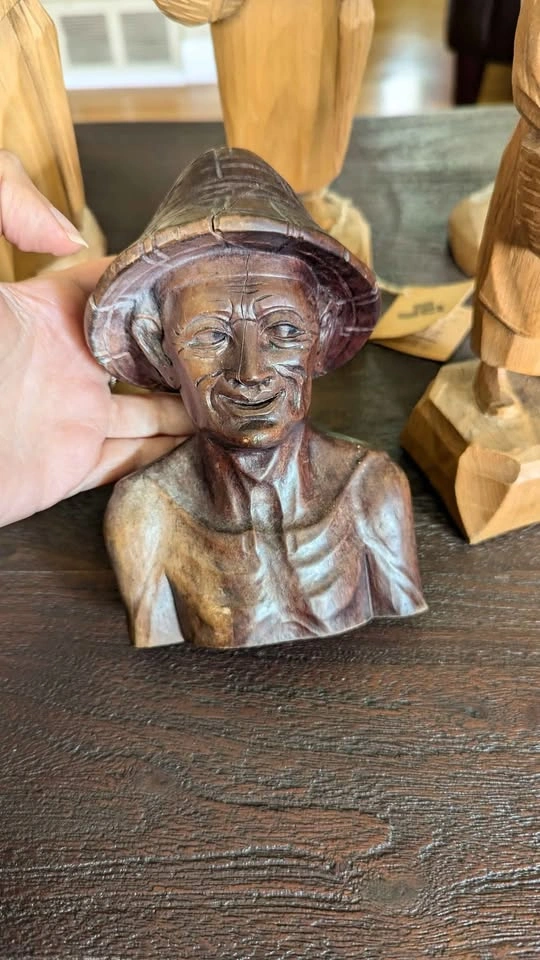 (1) Small dark-wood bust – ~6” tall (unsigned, likely South-East Asian or Balinese origin, different wood and style)