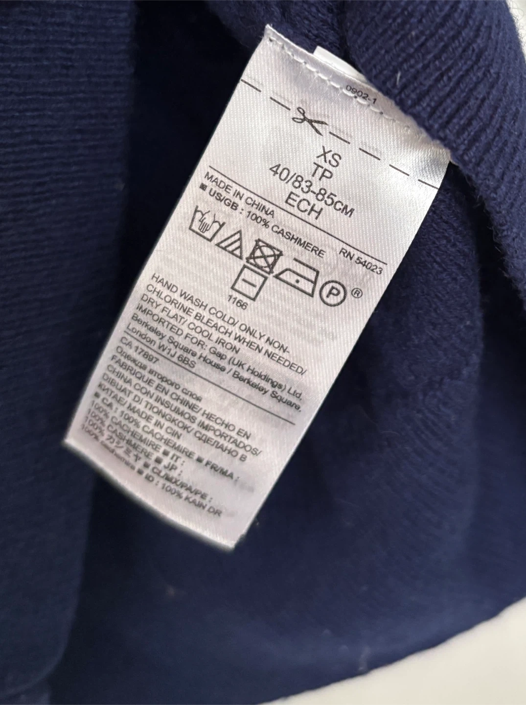 It's a size XS and the material is 100% quality cashmere. I couldn’t capture the colour very well but the colour in the last photo showing the care label is the closest.
