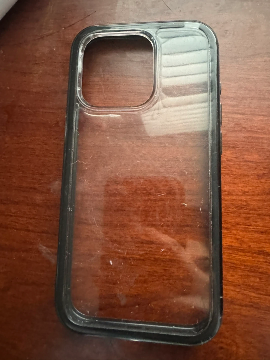 Selling a used iPhone case! It's clear with a black border. It's in good condition, ready to protect your phone.