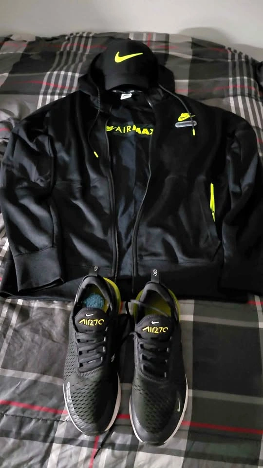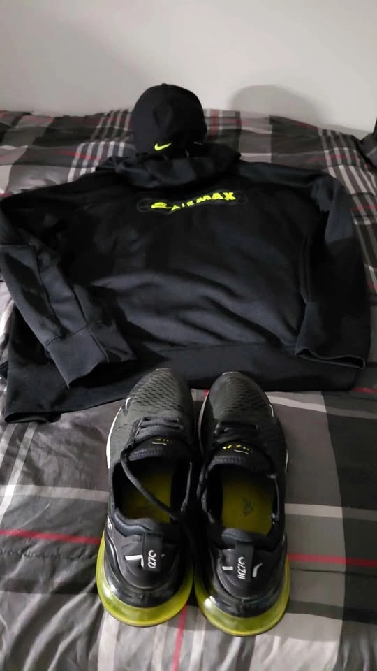 Selling a rarely used pair of set Nike Air Max shoes (size 9) in great condition — clean, stylish, and super comfortable. Also included: T-shirt (size Large), Hoodie (size Large). Sneaker 9, rare this model with. All items are in excellent condition, worn only a few times. Perfect combo for casual or sporty looks.