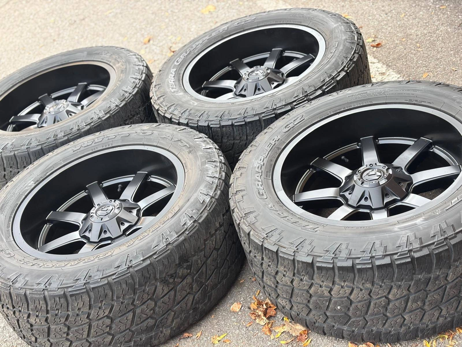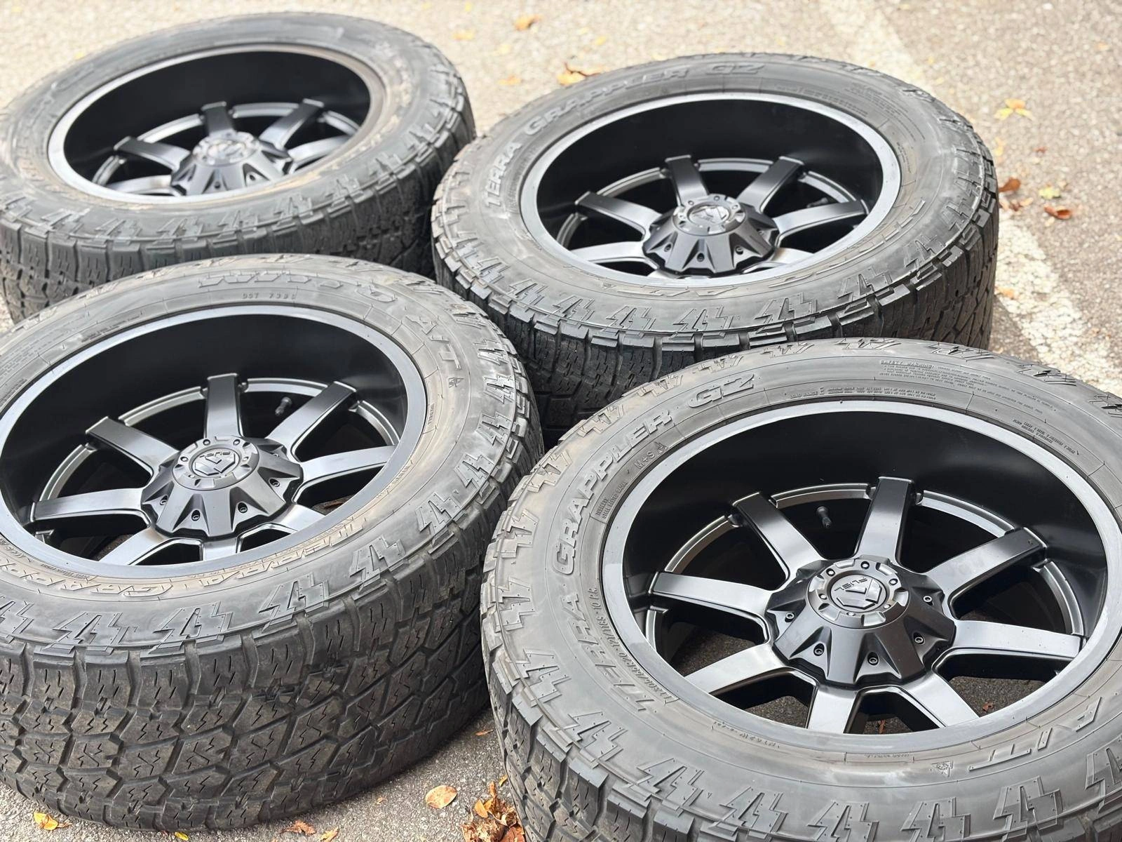 Set of Four Authentic BRAND NEW 20 inch FUEL MAVERCIK Wheels with used LT 305 55 R20 Nitto Terra Grappler G2 All Terrain mounted and balanced on them