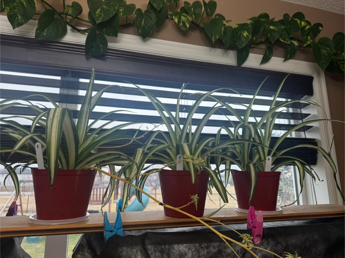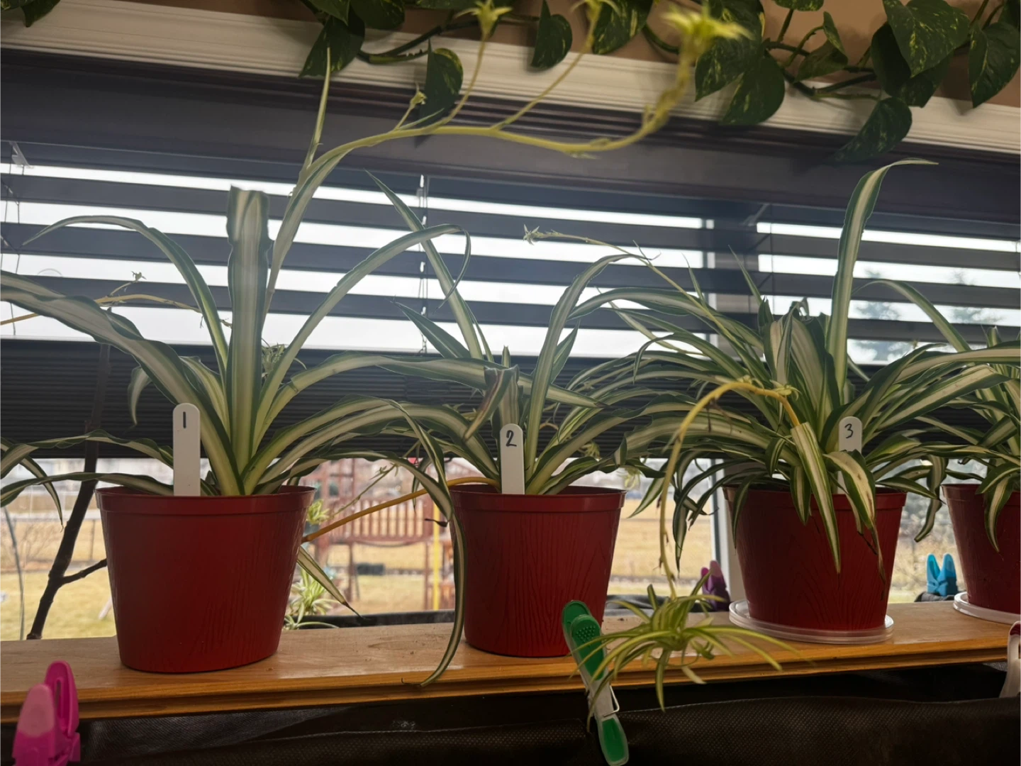 Spider plants in red pots