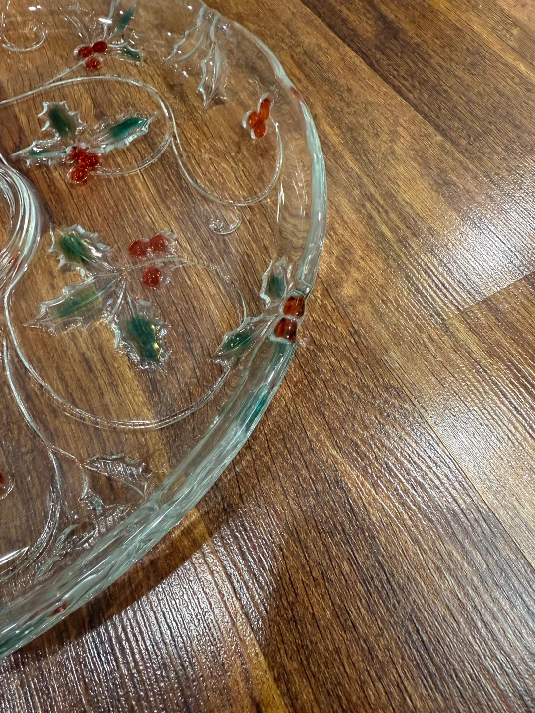 Clear Glass Serving Platter with Holly Design