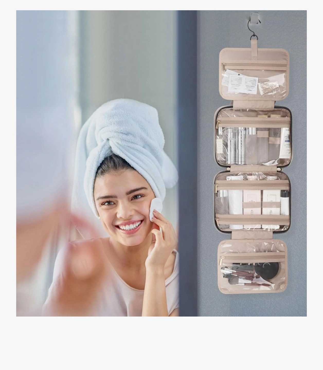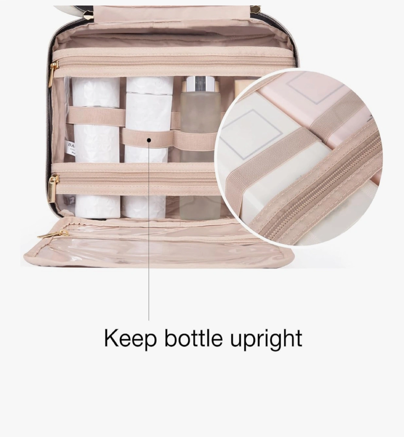 Keep your toiletries organized with this handy hanging travel bag! It features multiple compartments to keep everything in its place, and the hook lets you hang it for easy access. Perfect for travel