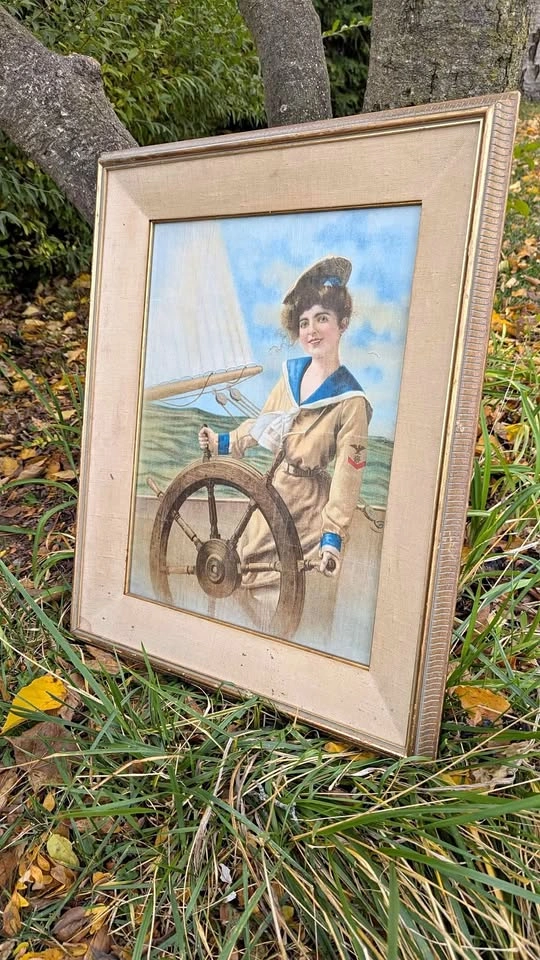 170Charming!! ⛵ nautical themed framed vintage art print, 23 inch by 28 size, perfect for barn decor, farm house, country house cottage etc.