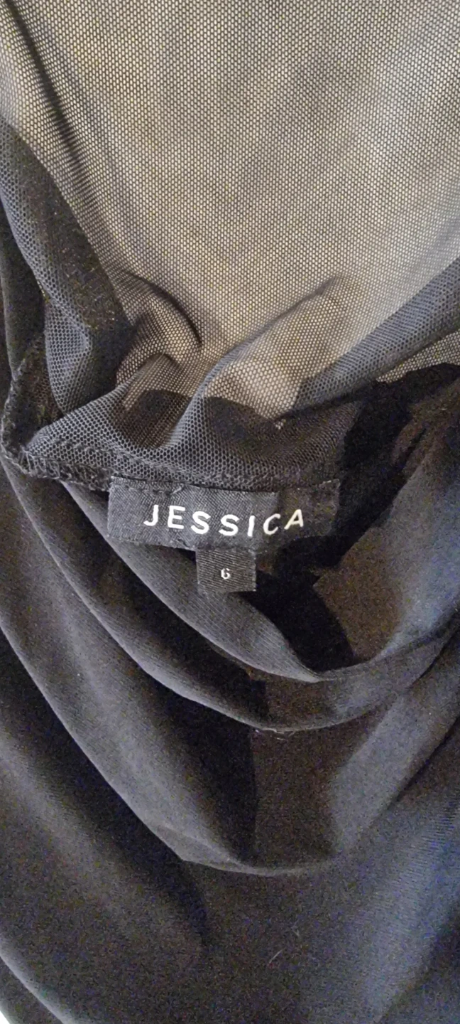 Selling a lovely black dress from Jessica! It's a size 6 and in great condition. The dress has a stylish design that's perfect for an evening out or a special occasion.