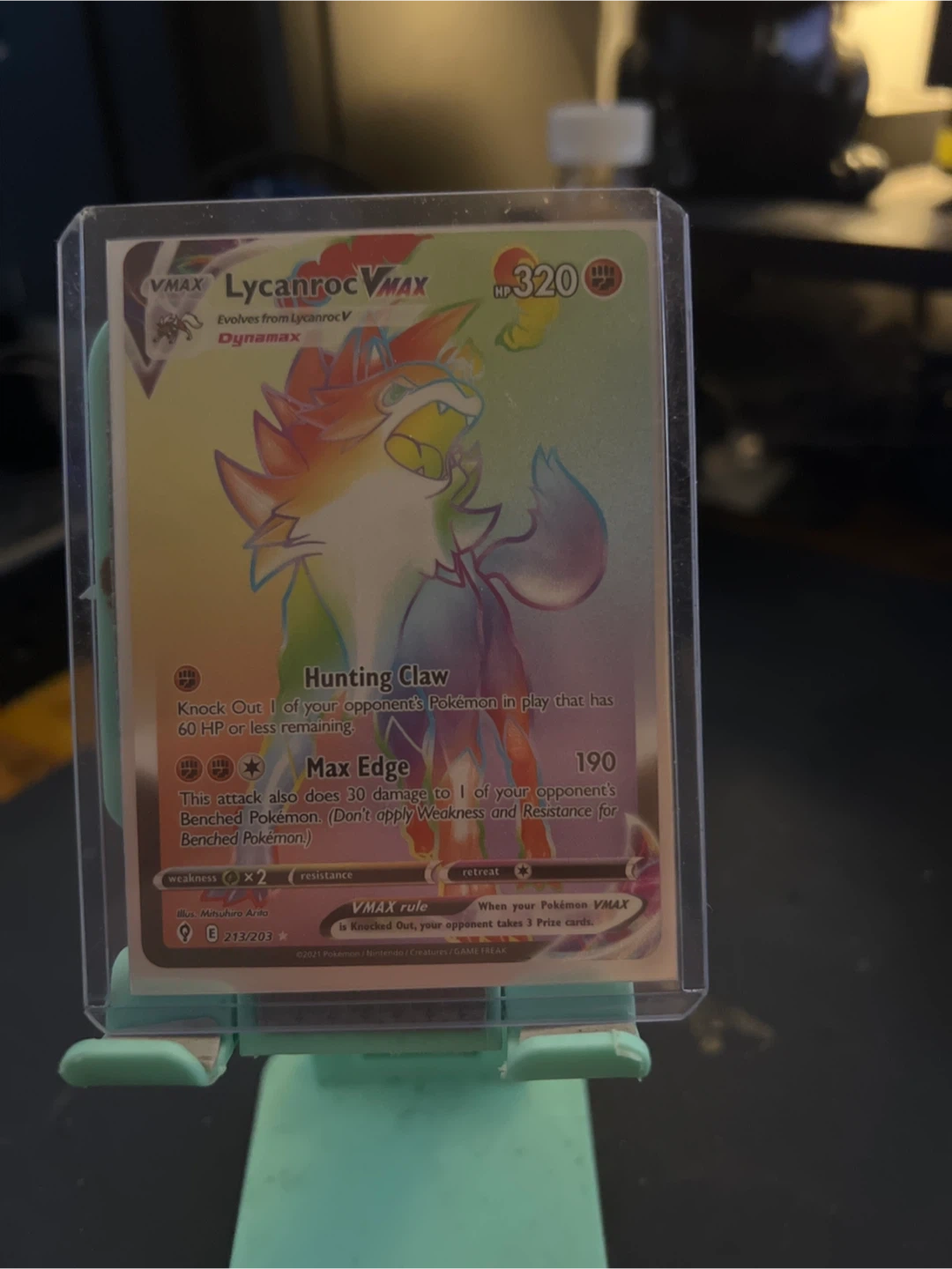 Selling a Lycanroc VMAX Pokemon card. It's a rainbow rare and in great condition. This card has the 'Hunting Claw' and 'Max Edge' attacks. It evolves from Lycanroc V Dynamax. Add this awesome card to your collection!