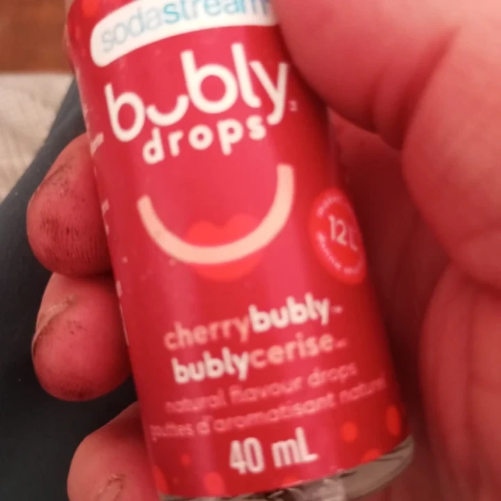 SodaStream Bubly Drops in cherrybubly-bublycerise flavour. Natural flavour drops. 40ml bottle. Makes 12L of bubbly water.