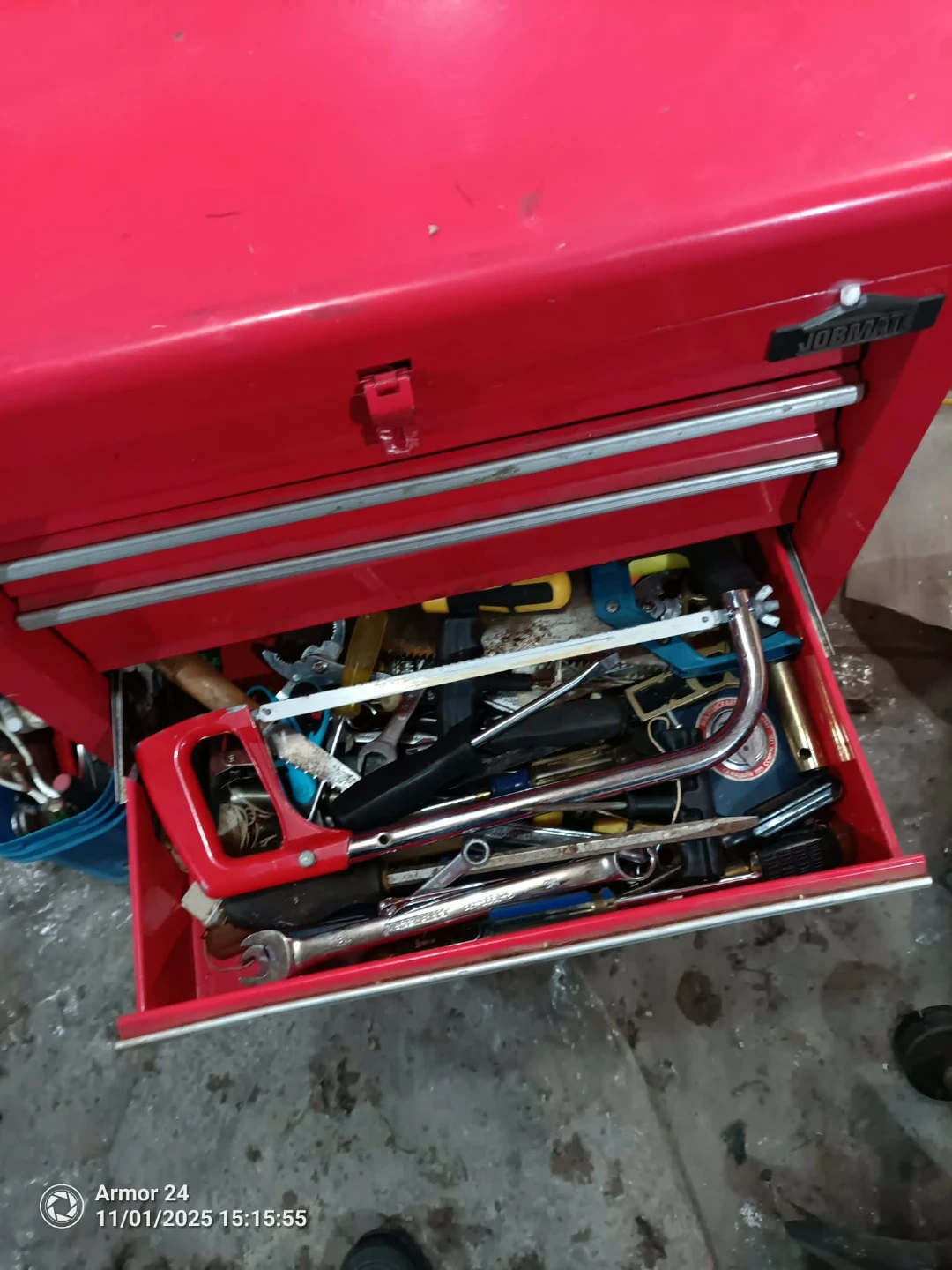 Selling a red Jobmate tool chest! It has multiple drawers for organizing all your tools and equipment. It's in good condition and ready to help you keep your workspace tidy. It comes with tools.