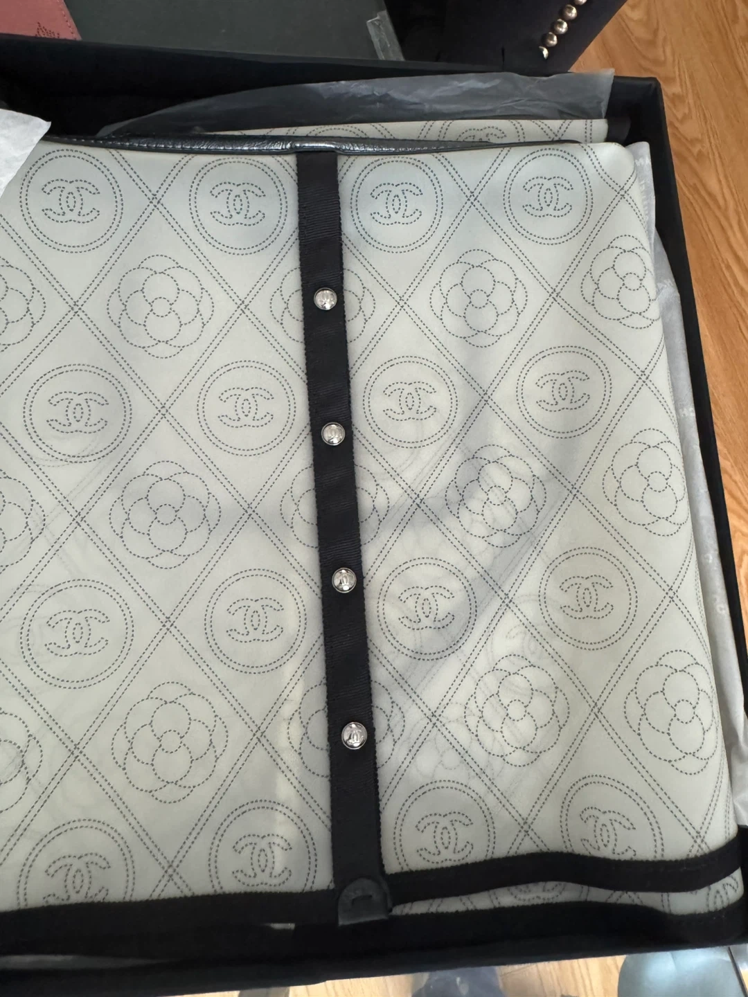 65Chanel handbag raincoat. It is a protective accessory designed to shield a Chanel bag from rain and other elements.