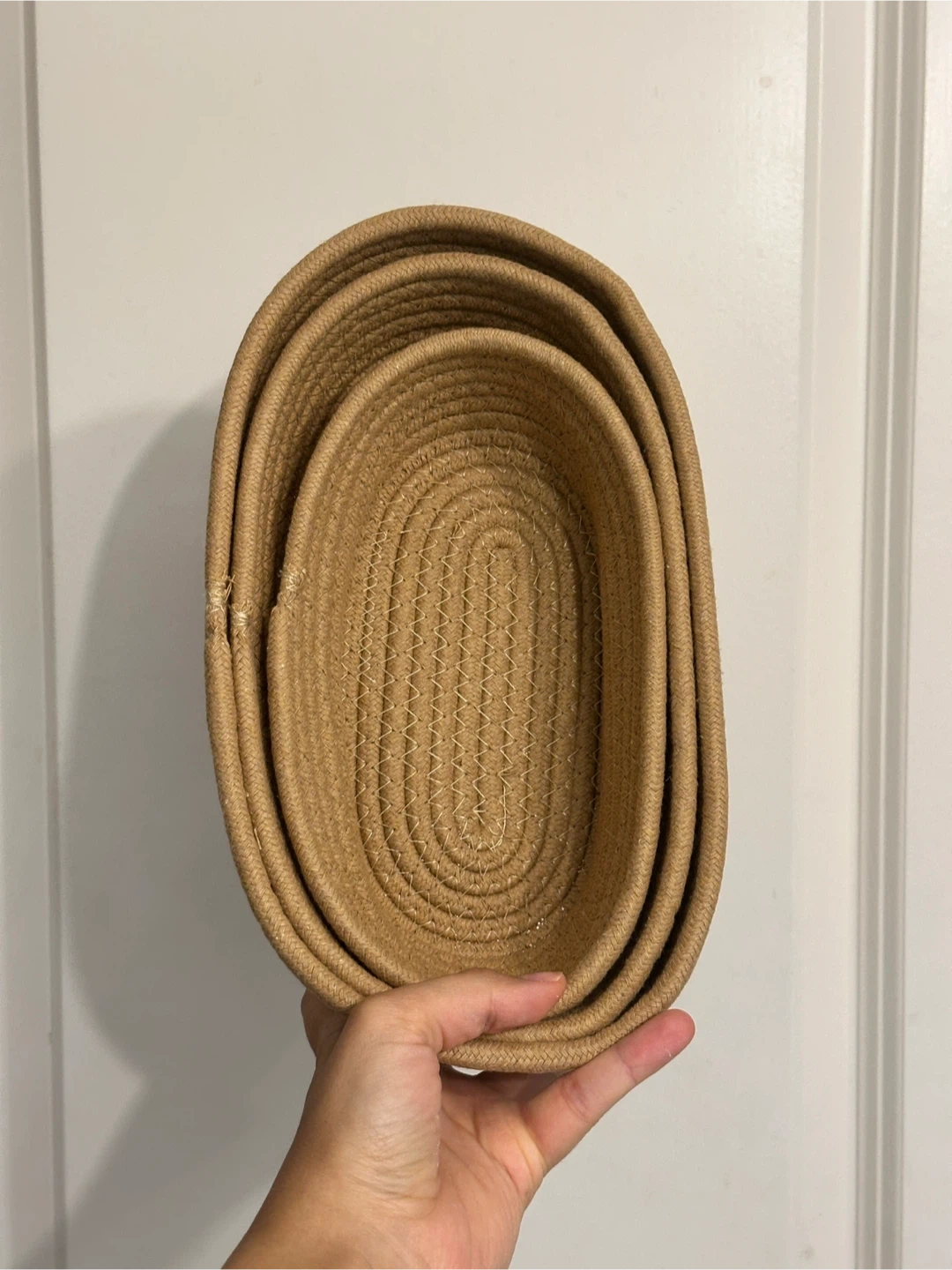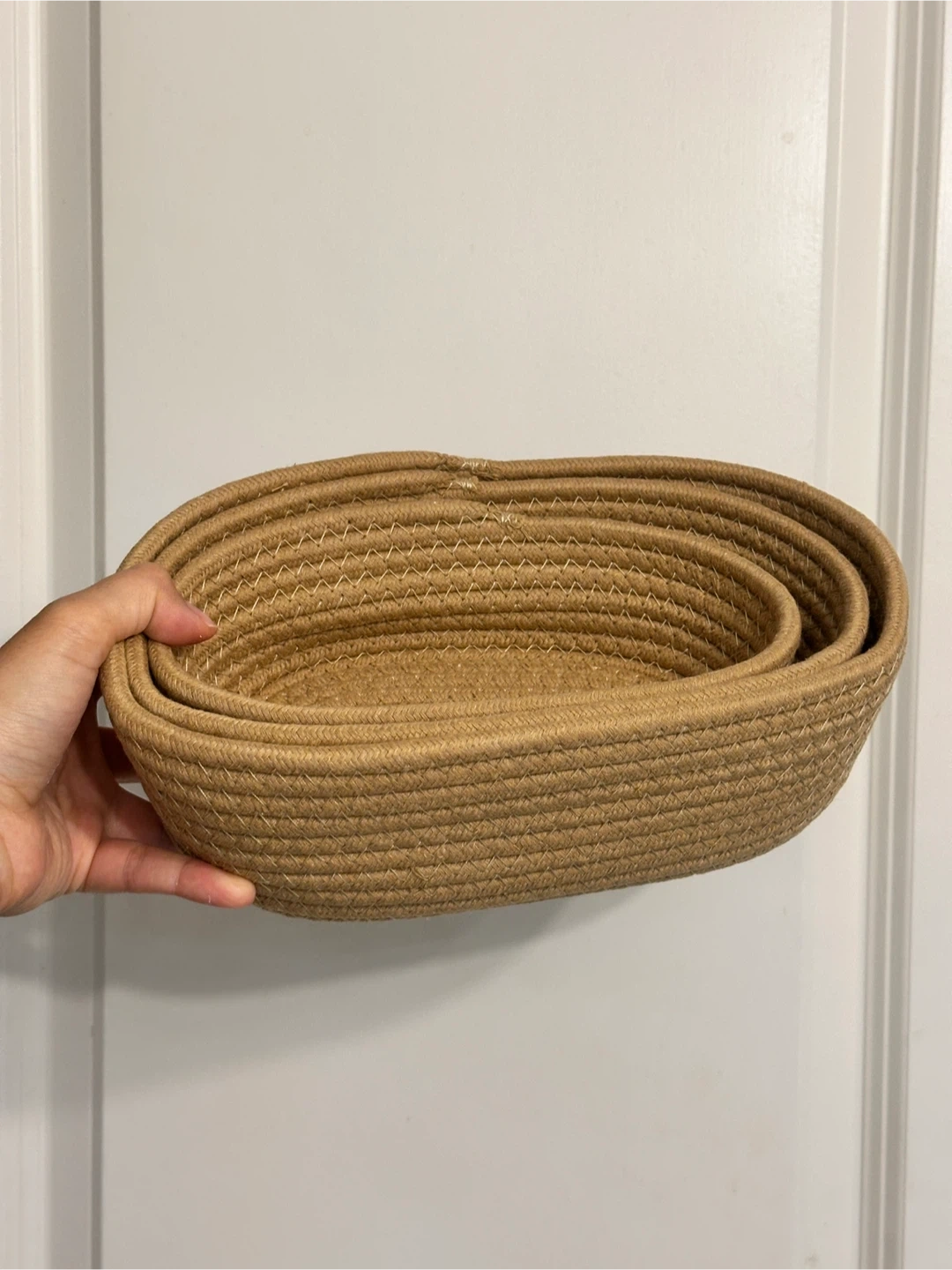 1000+Set of 3 beige colored oval baskets, great for organizing or decor. Brand new as I ended up not using them. All prices are flexible, feel free to make an offer or bundle for discounts! π