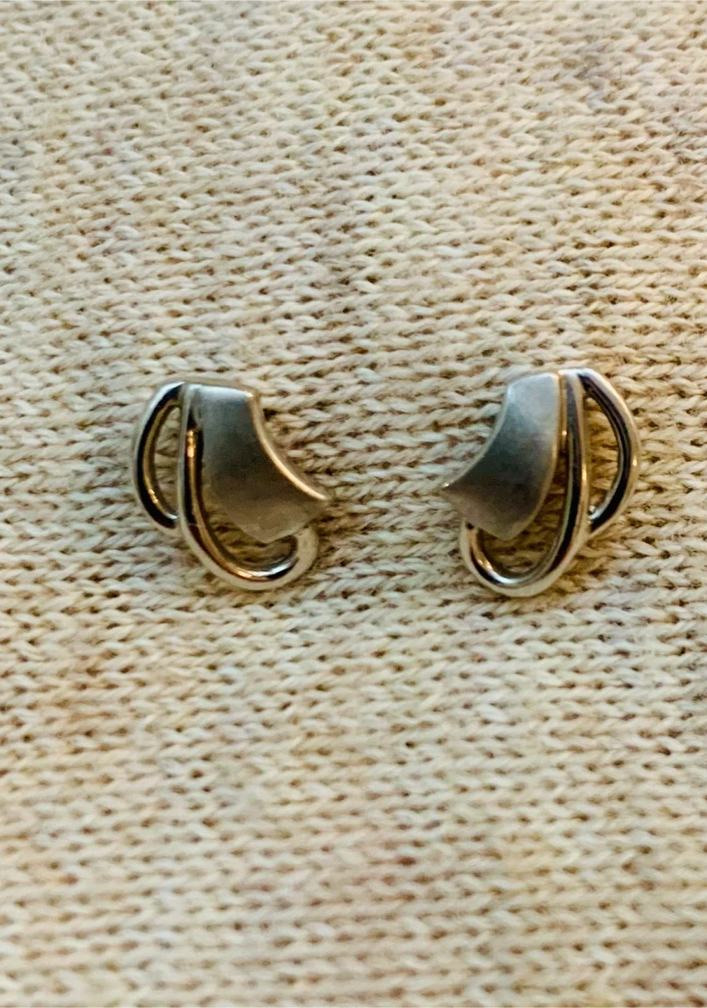 Here are some silver/brushed silver earrings. They're in new condition and ready for a new home! They have a unique design that's sure to catch the eye.