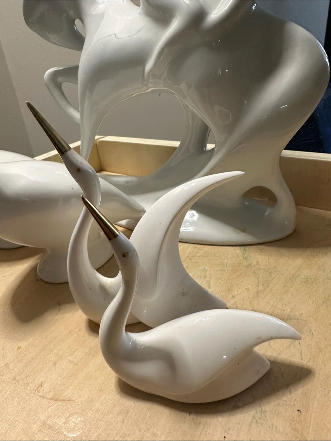 Selling a lovely white ceramic sculpture of a horse and rider, along with other white ceramic birds. It would be a great addition to any home!
