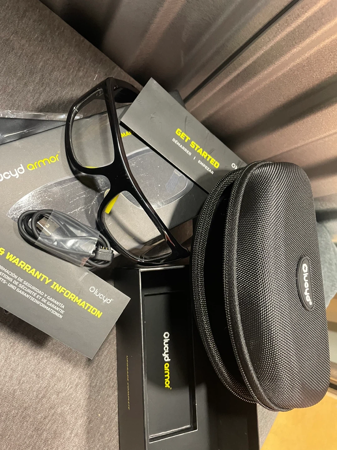 Selling a pair of Lucyd Armor smart safety glasses. They come with the original box and case, along with all included components. Great for anyone needing eye protection with smart features! Open ear Speakers, mic, light adaptive lenses, Bluetooth, TR90 frame.