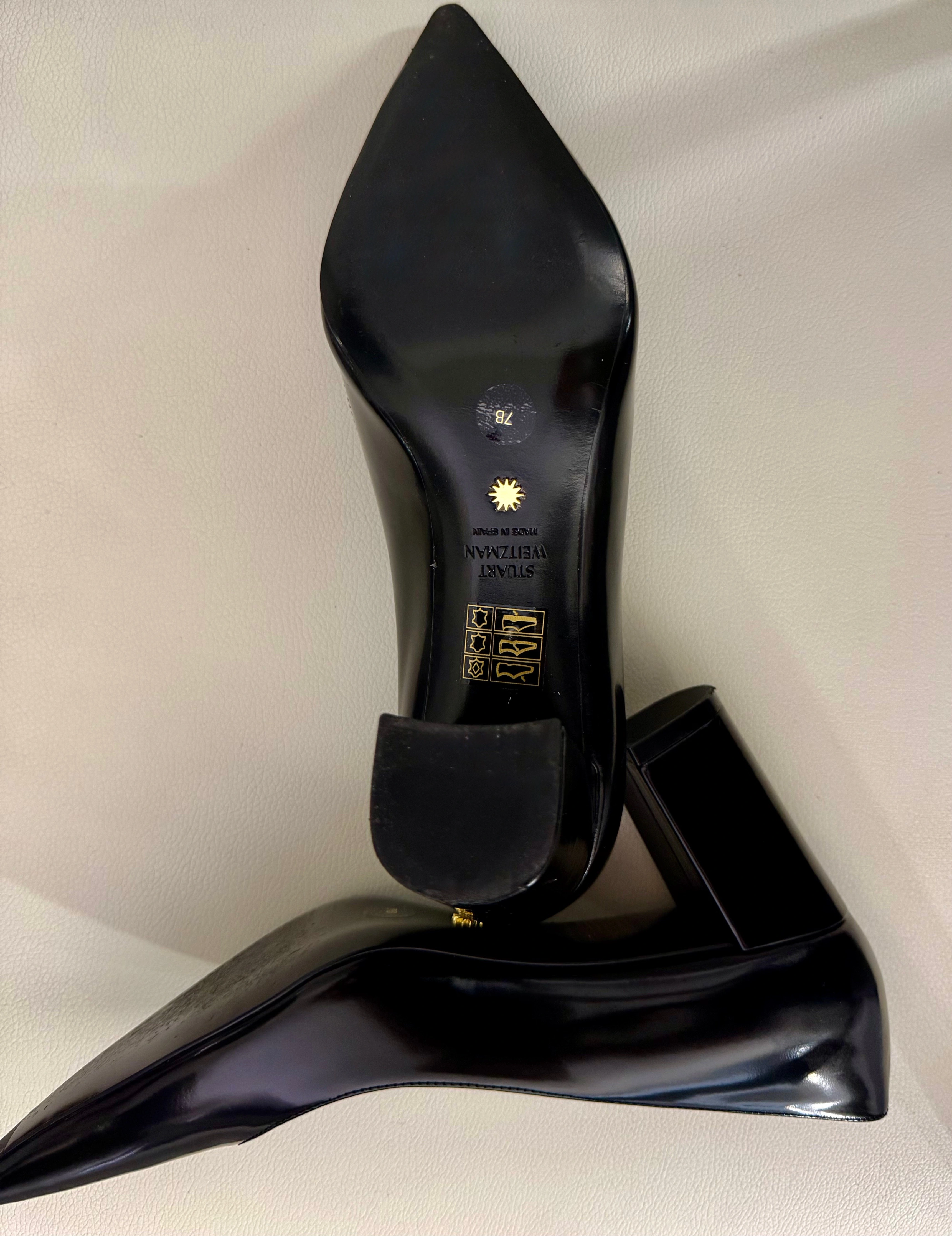 60- Genuine Stuart Weitzman Black Leather Pumps – Classic & Chic - Excellent condition inside and out — clean, well cared for, and worn only two or three times - Size: 7B - Heel Height: 3 inches - Material: Genuine leather