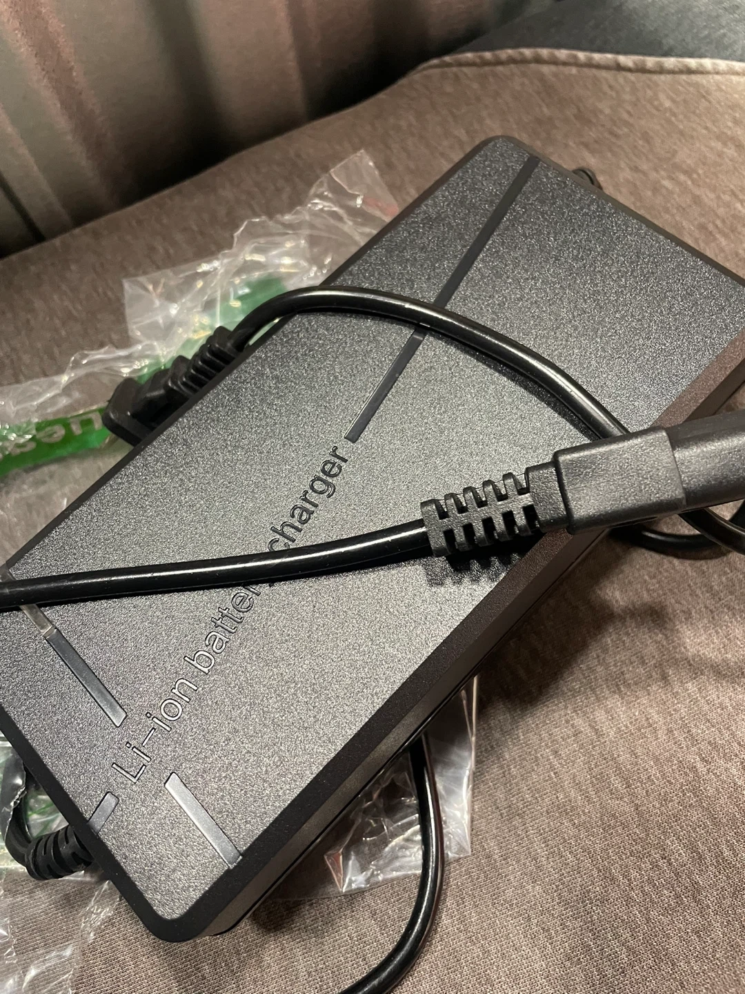 Selling a Li-ion battery charger. It's applicable for lithium batteries and has an input voltage of 110V-220V 50Hz. The charger indicates full or disconnected with a green light, and charging with a red light