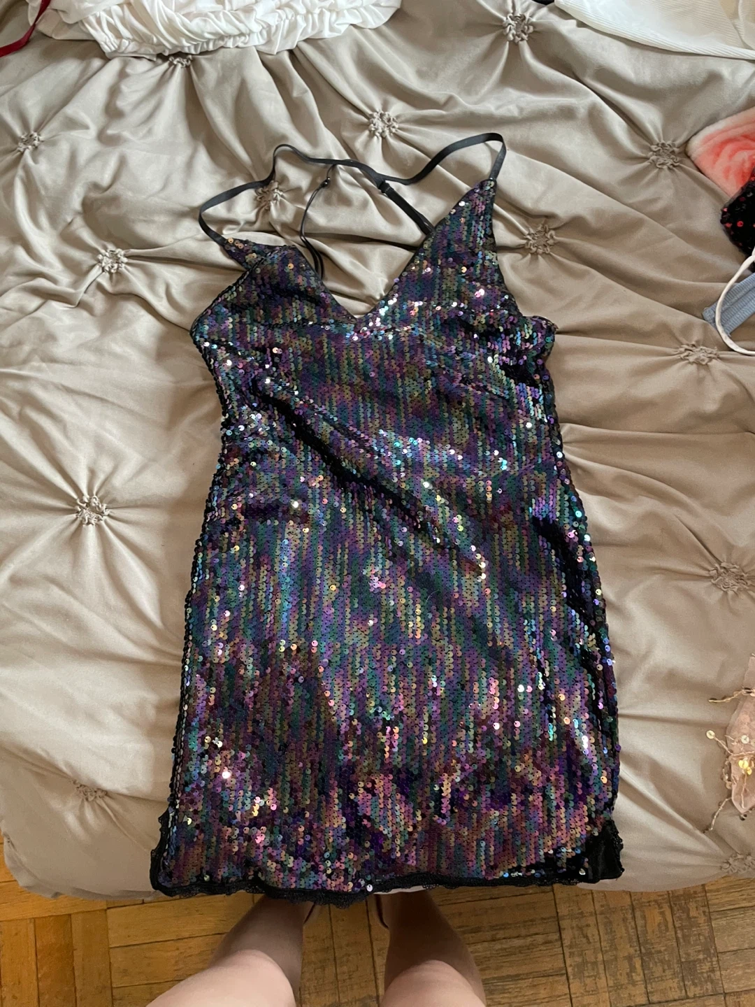 Buy & SellSequin Mini DressSequin Mini Dress$5Selling a sparkly sequin mini dress! It features a V-neck and criss-cross back straps. Perfect for a night out!ConditionLike newSizeSmall0 chats·0 favorites·14 viewsSELLERverifiedEmilyUpper Jarvis63259 reviewsWHERE TO MEETAt the gas station on Jarvis and Wellesley