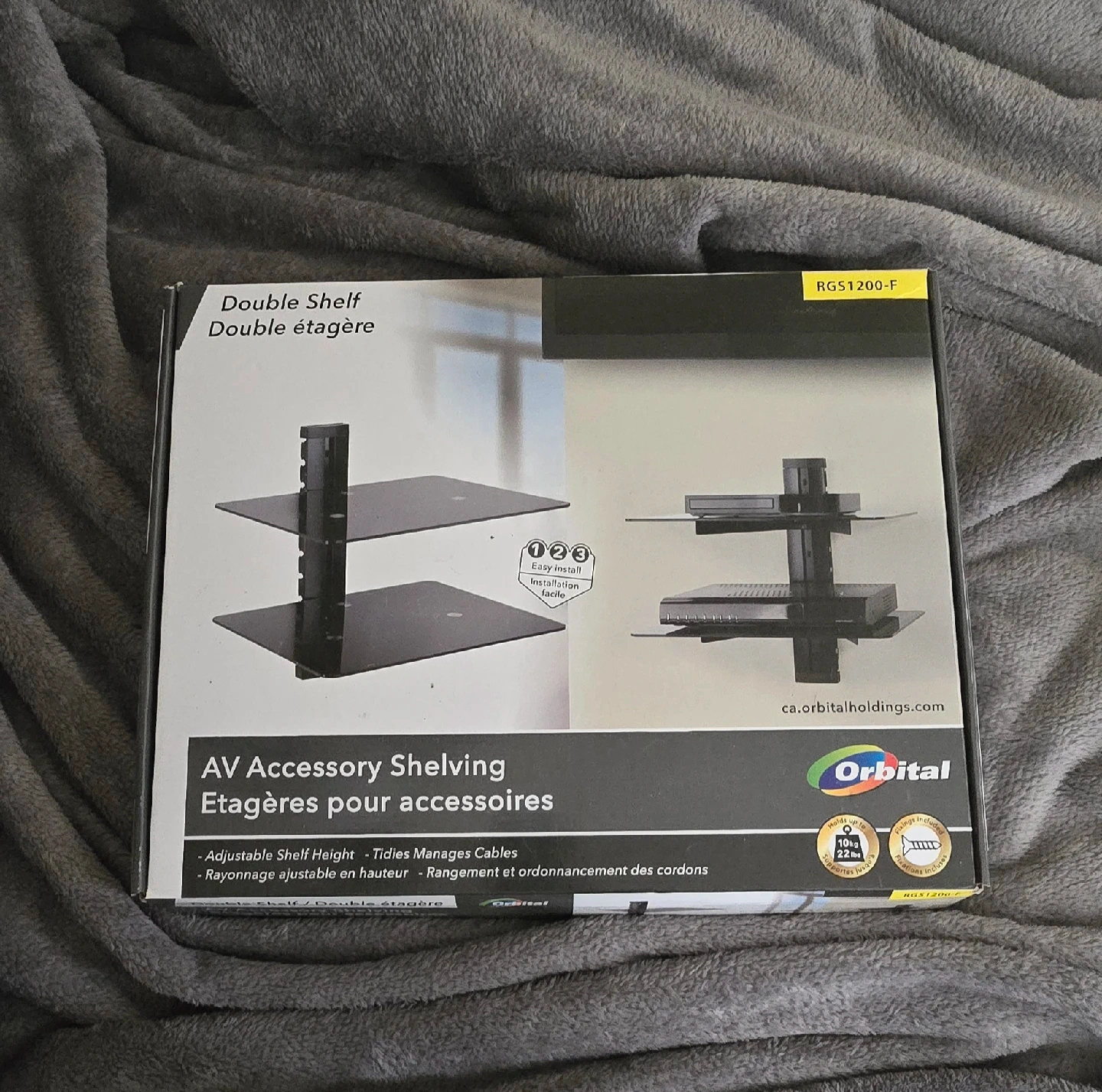 Upgrade your home entertainment setup with this Orbital AV accessory shelving unit, featuring two sleek glass shelves designed to hold your media devices and tidy up cables.