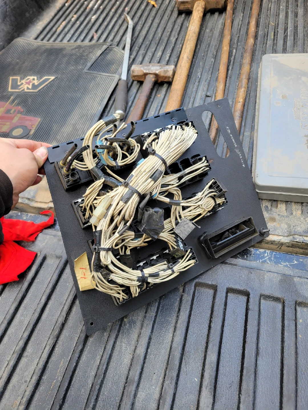 Selling a vehicle switch panel with various controls for lights, engine functions, and other vehicle systems. The panel includes switches for engine brake, cruise control, trailer lift, and more. Please review the images for specific labels and functions. $5 a piece or $110 for everything