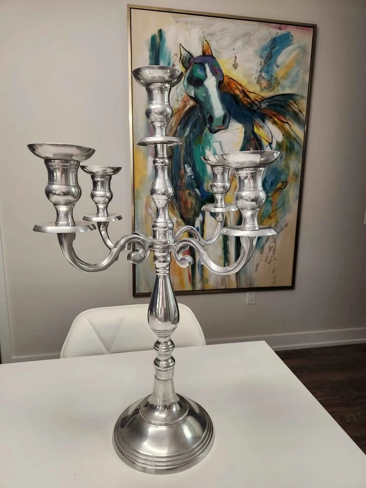 Buy & SellBeautiful metal candle holderBeautiful metal candle holder$119Silver color candle holder. Holds 5 stick candles. 16x24 inches tall.WHERE TO MEETCheck LocationView MapSELLERJackPort Credit150 reviews0 chats·0 favorites·8 viewsSEND CHAT TO SELLERHi Jack! I’m interested in your listing.Hi Jack! I’m interested in your listing.Get the Karrot app to chatSign In to chat