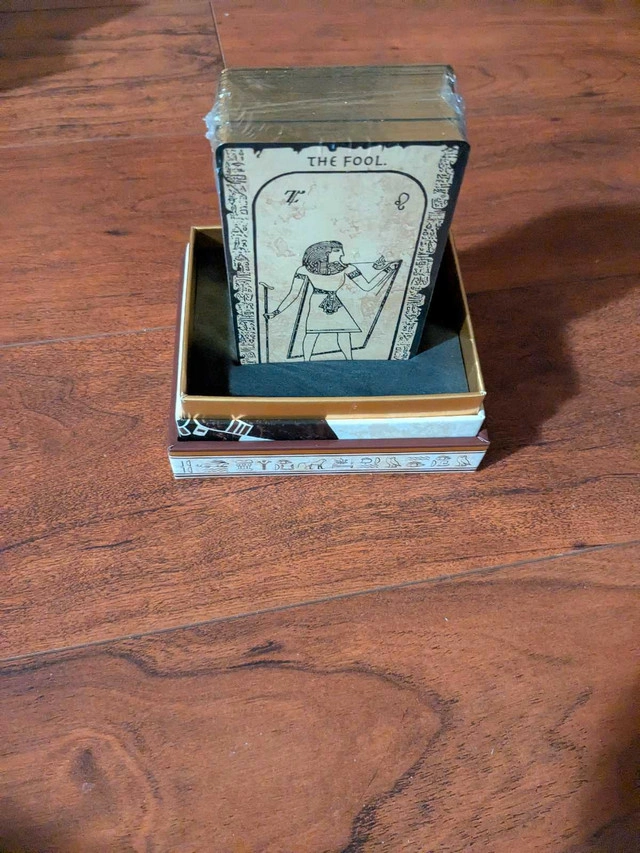 Selling a collectible Osiris Tarot deck in like-new condition. This captivating deck is perfect for tarot enthusiasts and collectors alike, offering a unique artistic interpretation. * Complete deck * new condition * Unique artistic style Based on my research of similar tarot decks on Kijiji, I am pricing this Osiris Tarot deck at $35, a fair price for its excellent condition and collectibility. If you're seeing this ad, the tarot deck is still available.