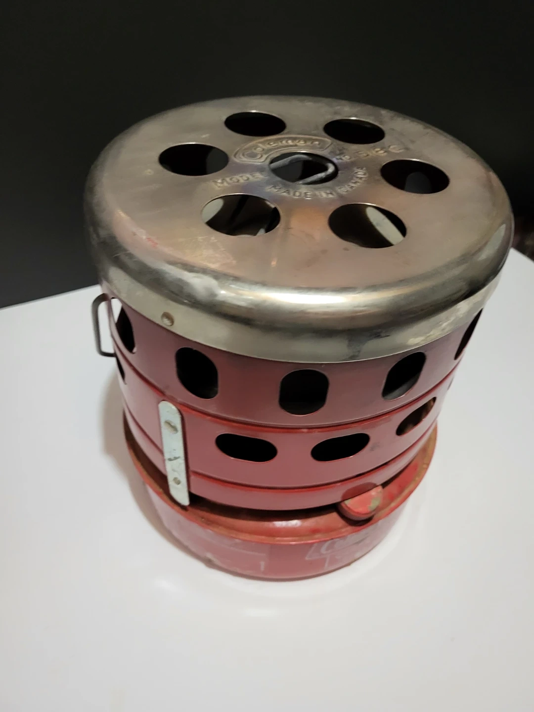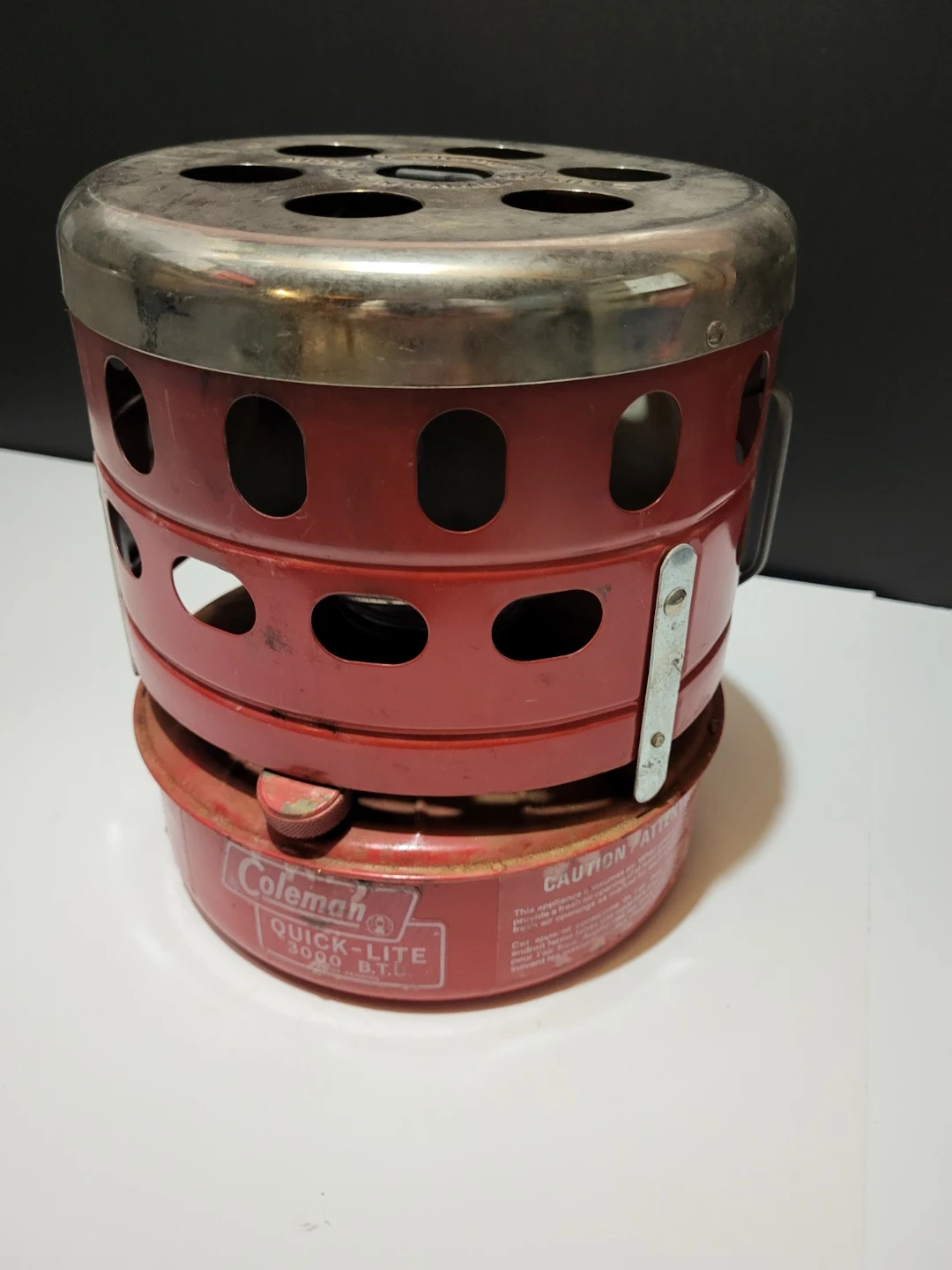 Selling a vintage Coleman Quick-Lite 3000 BTU heater, model 518C. It's made in Canada and has a red finish.