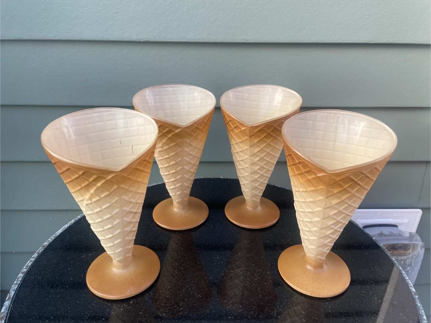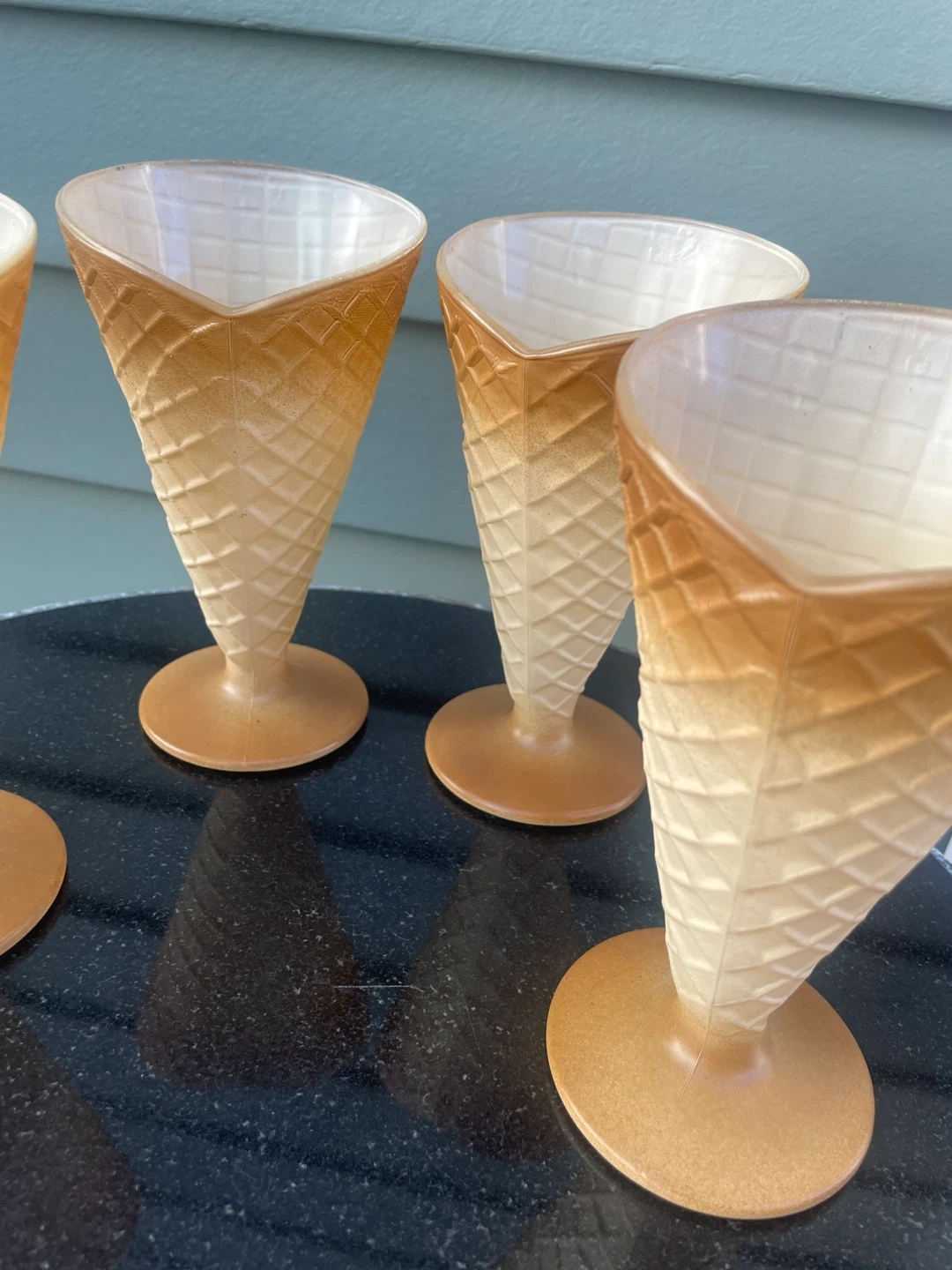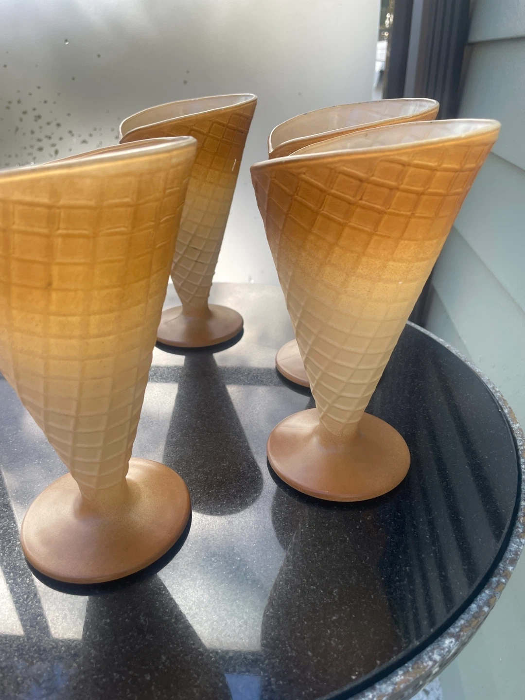 Selling a set of four adorable ice cream cone shaped dessert cups! They're in great condition and ready to make your next sundae night extra special