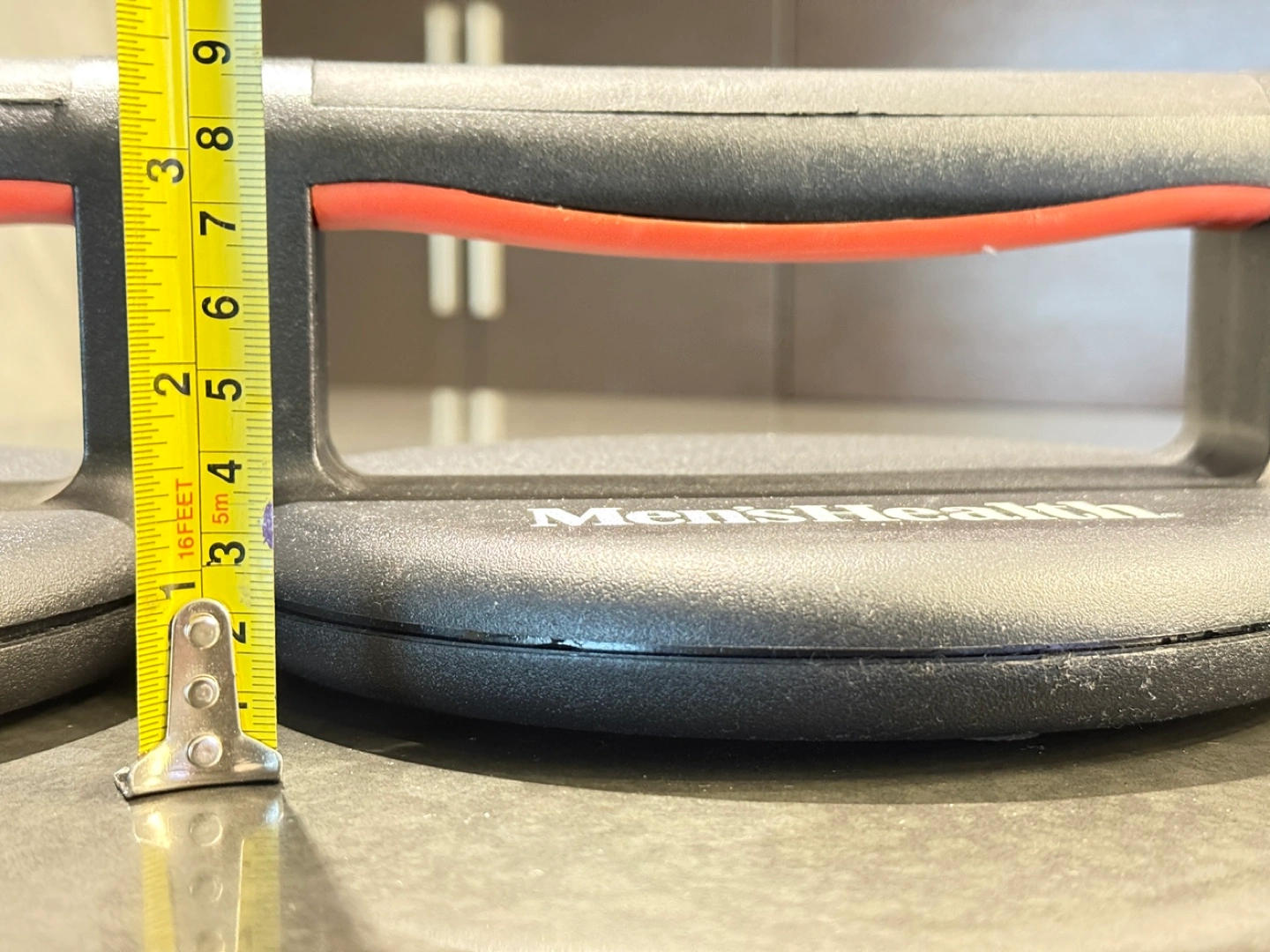 Selling a pair of Men's Health push-up stands! They're in great shape and ready to help you level up your workouts. The stands are black with a touch of orange, and they measure about 4 inches tall. Perfect for anyone looking to improve their push-up form and get a deeper range of motion