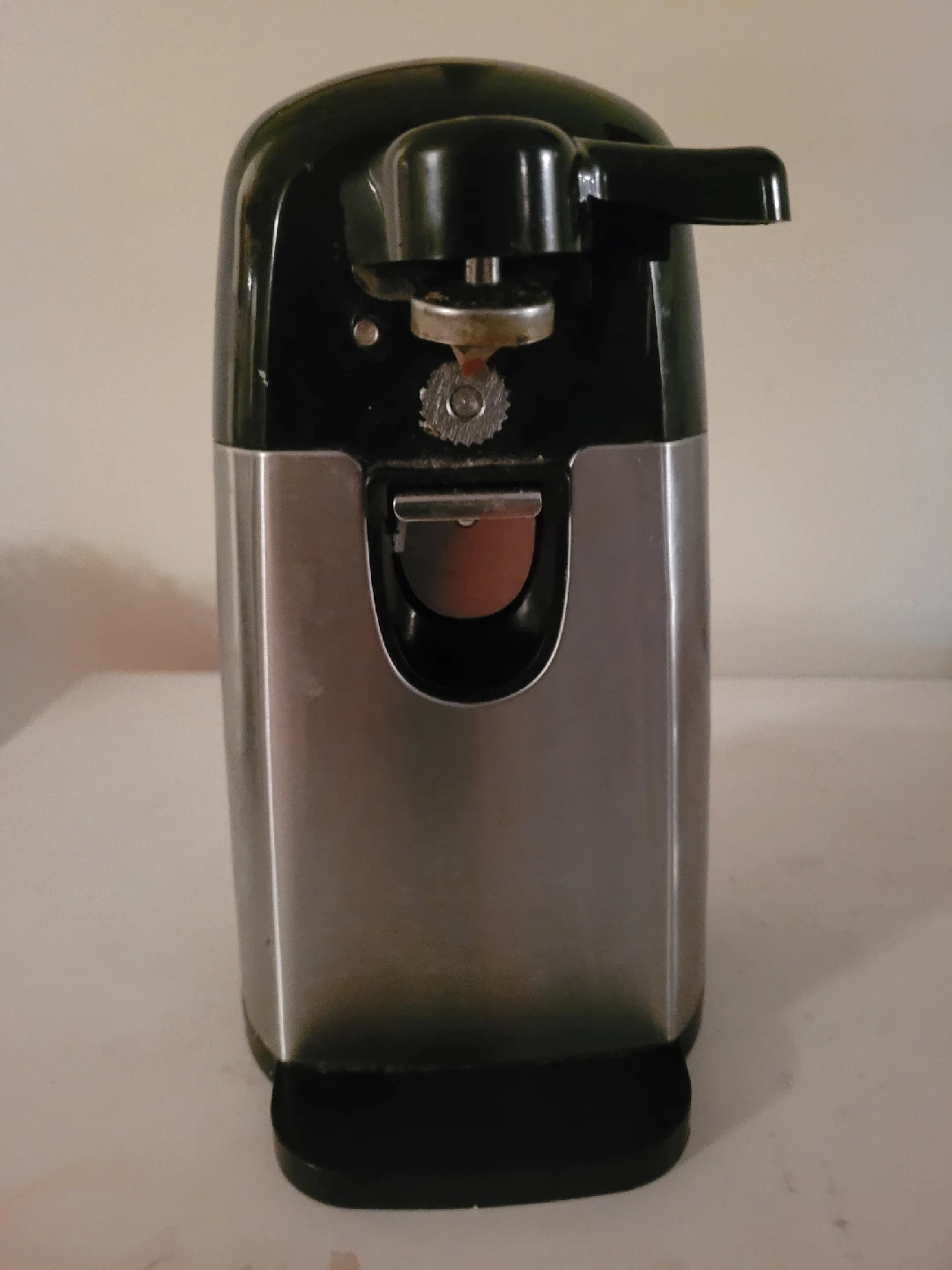 1000+Crack open your favourite canned goods with ease using this AmazonBasics electric can opener! This handy kitchen appliance is in used condition and ready to assist you with all your culinary adventures. Specifications: * Brand: AmazonBasics * Type: Electric Can Opener * Colour: Silver and Black * Condition: Used Did you hear about the cheese factory that exploded in France? There was nothing left but de Brie! If the ad is up, it's available!
