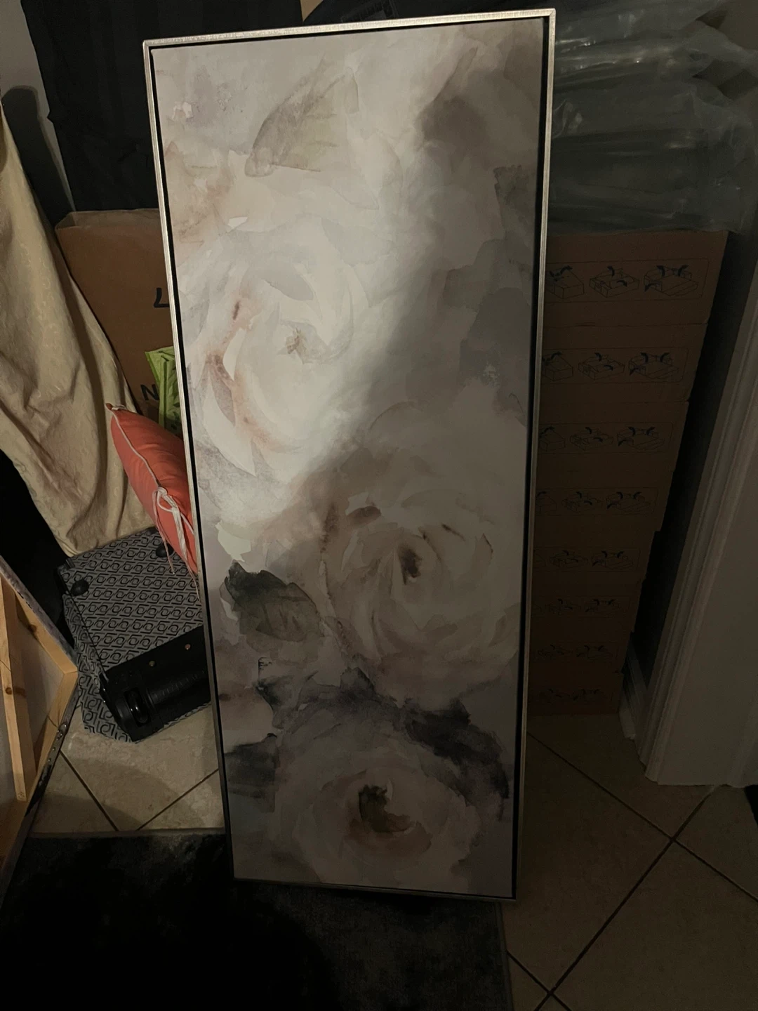 Selling a lovely piece of floral wall art. It measures 19x49 inches and would look great in any room of the house. $45.00 OBO