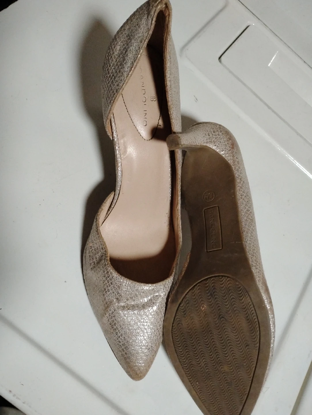 These are a pair of Bandolino women's heels in a size 8. They have a snakeskin-like texture and a classic pointed-toe design. Perfect for dressing up your outfit!