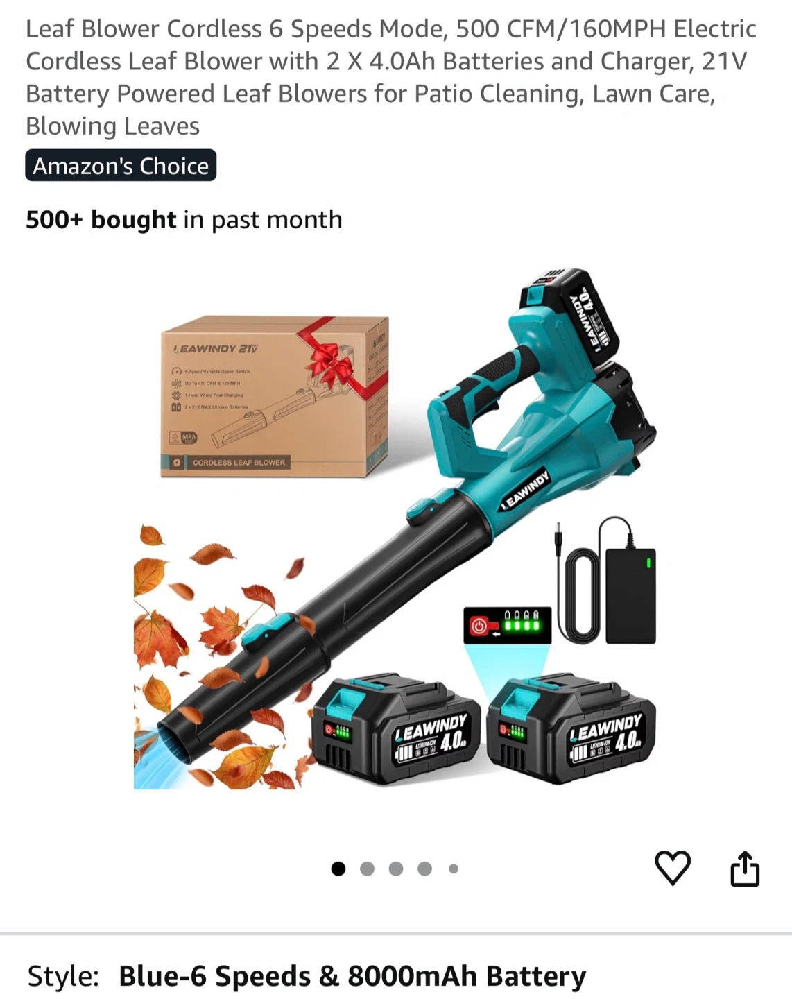 Get your yard work done efficiently with this LEAWINDY cordless leaf blower! It features 6 adjustable speeds and comes with two 4.0Ah batteries for extended use.