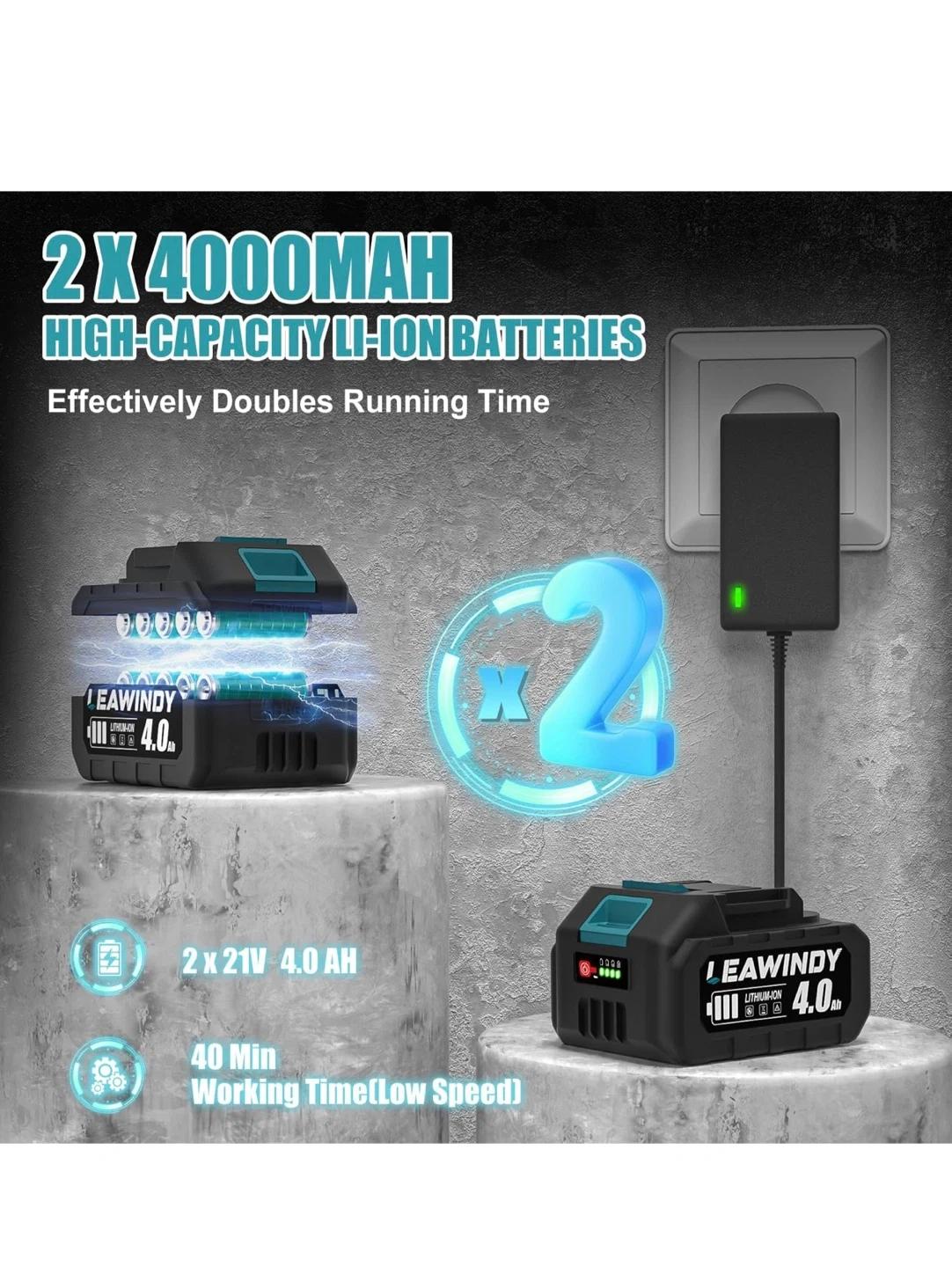 LEAWINDY Cordless Leaf Blower - 6 Speed, 2 x 4.0Ah Batteries