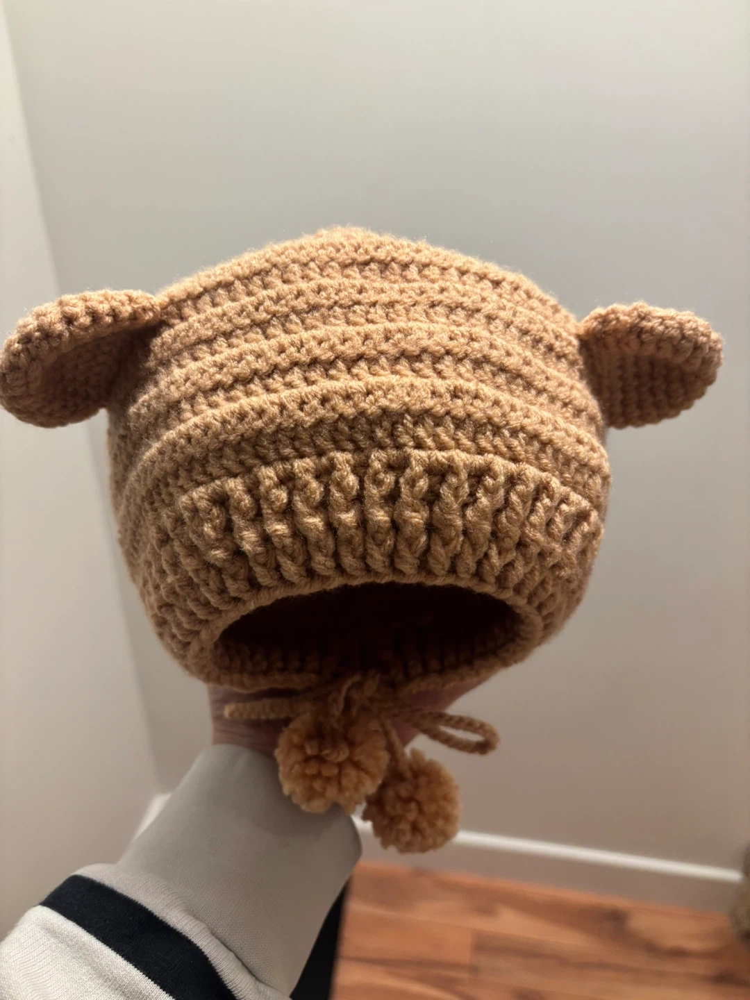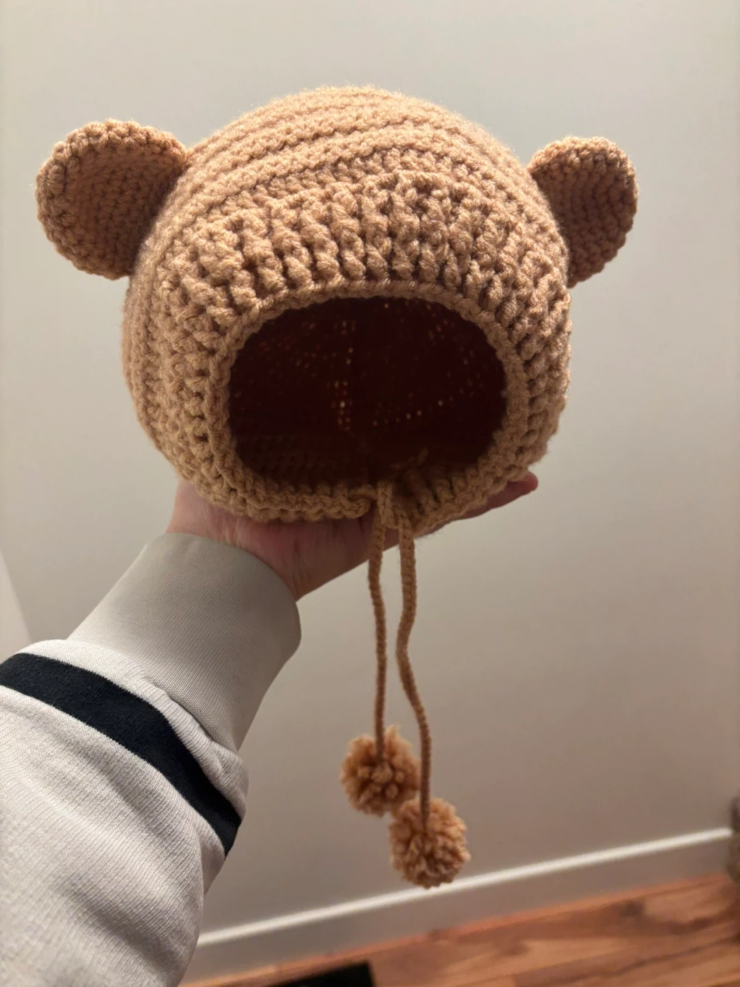 31Selling a super cute handmade crochet bear hat! It's a lovely beige colour and has little pom-poms. Perfect for keeping your little one warm and stylish