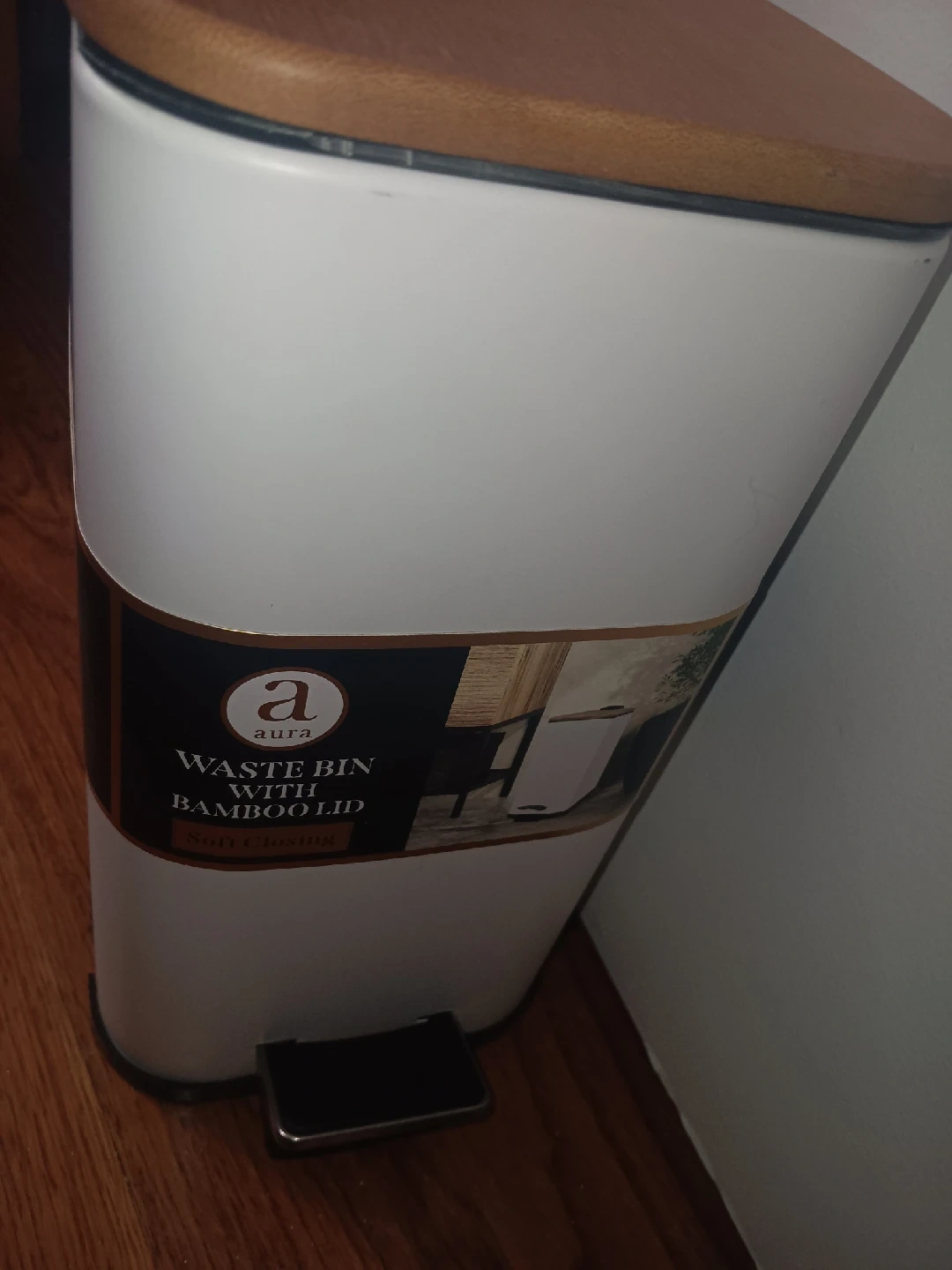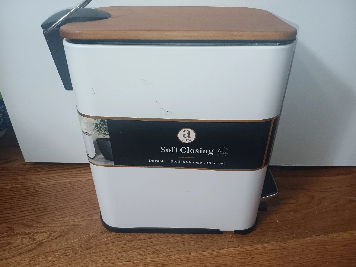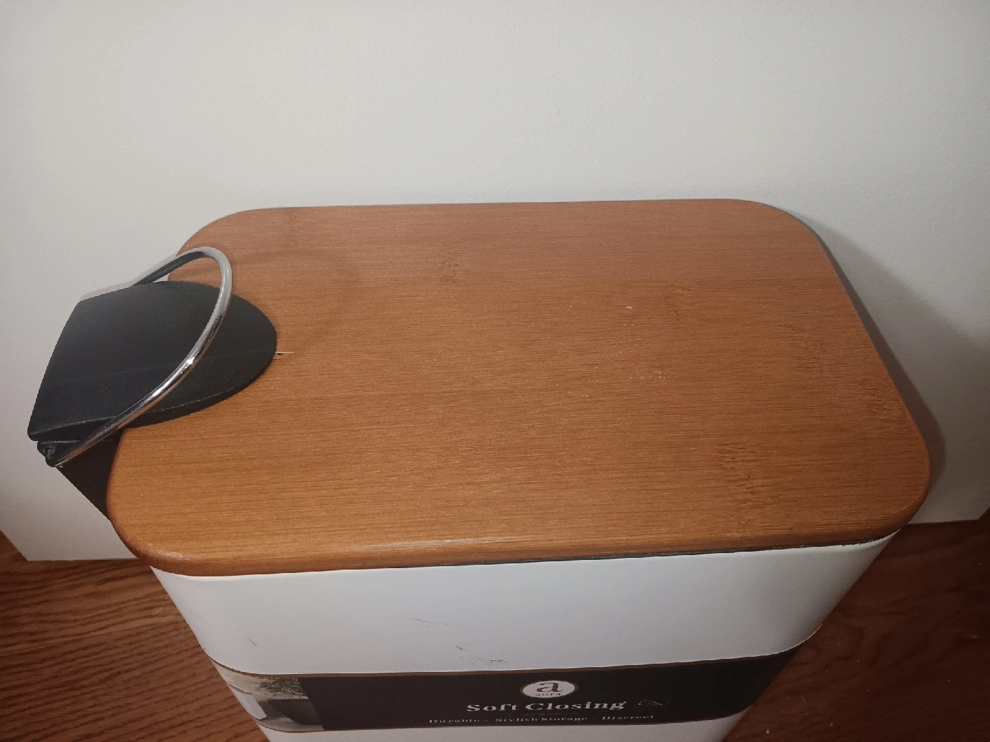 756Selling an Aura waste bin with a bamboo lid! It has a soft closing feature and a durable, stylish, and discreet design. Perfect for any room!