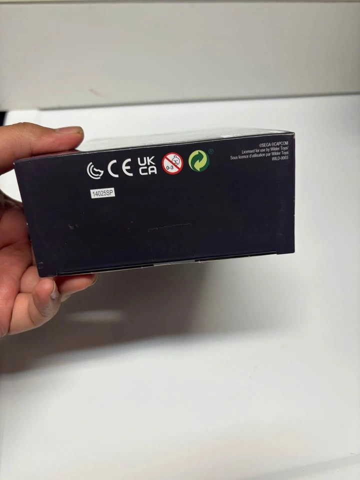 Collectible diorama of Street Fighter II’s dock stage, housed in a foldable Sega Genesis cartridge replica. Includes 1.5-inch mini-figures of Ryu and Ken with peggable bases for placement in the scene.