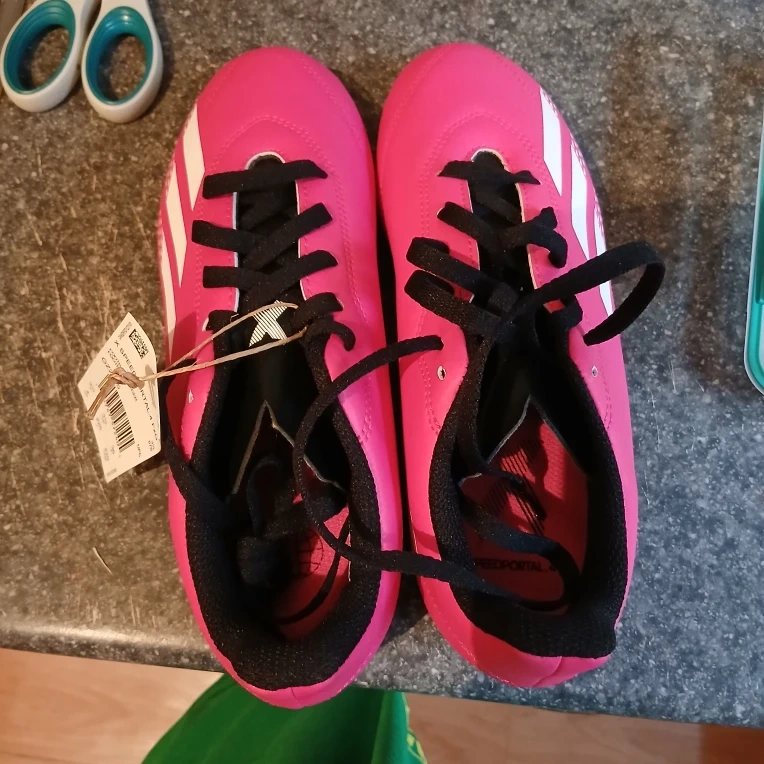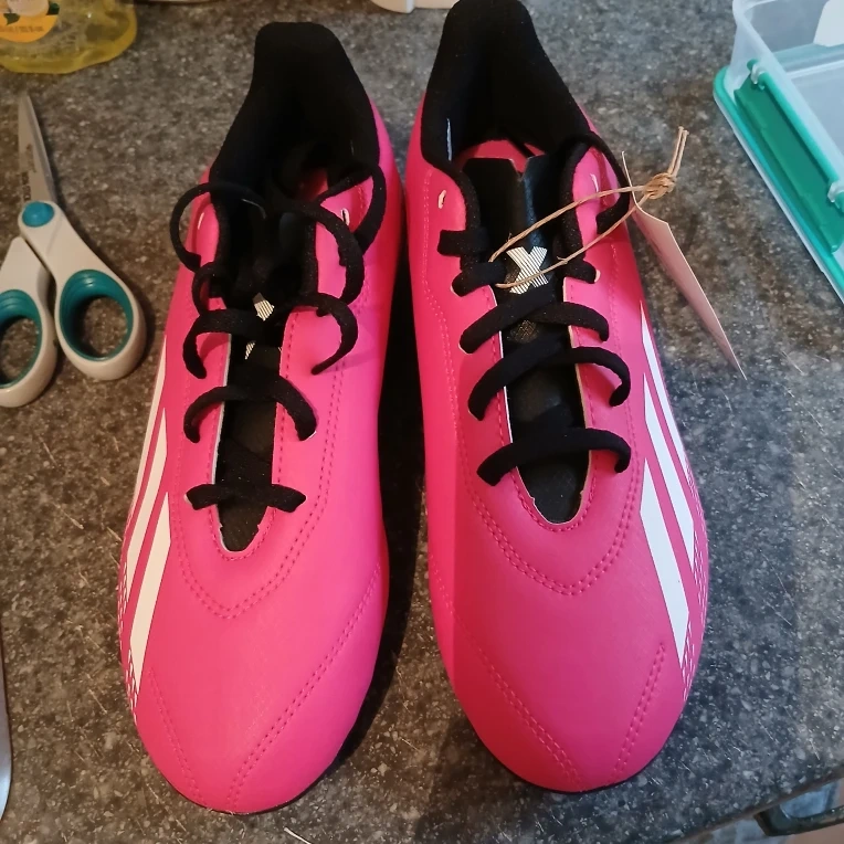 498Selling a pair of brand new Adidas soccer shoes! They are pink with black laces and white stripes. They are still new with tags, so they're in perfect condition and ready for the field! - $25 Also running shoes - $15 pick up only