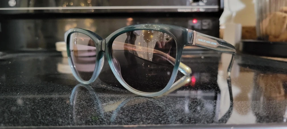 Selling a pair of Marc by Marc Jacobs sunglasses. Their ombre style and teal in color. They're in great shape, no scratches. On the lens.